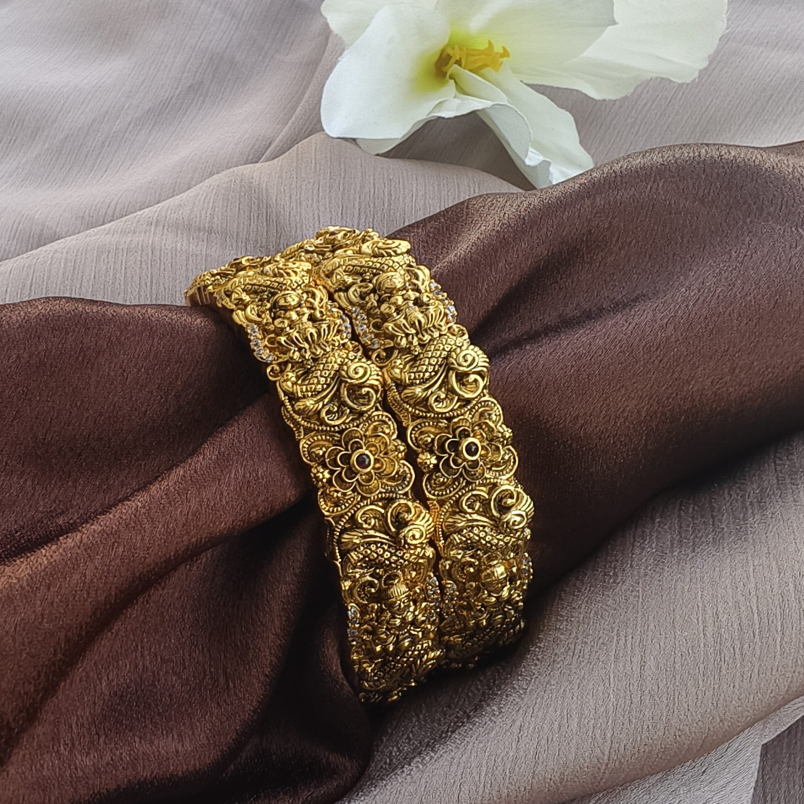 Be the first to review “fjb57d Nakshi polish temple gold bangles 2.10 size”