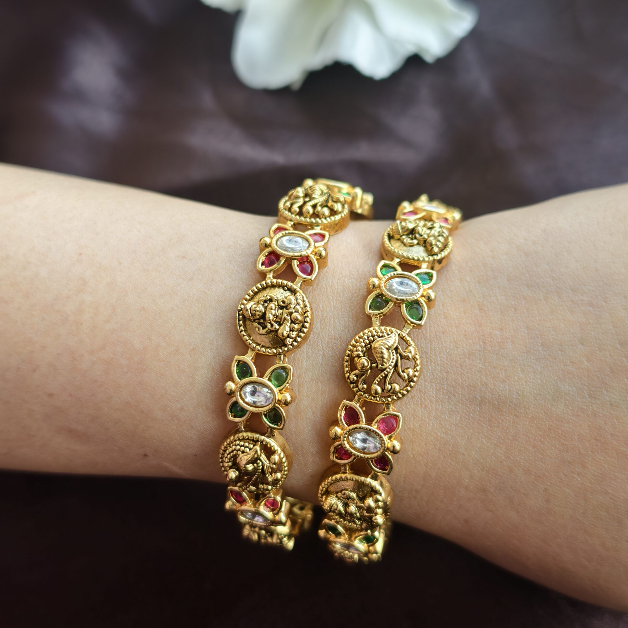 Be the first to review “Antique nakshi polish peacock bangles 2.4”