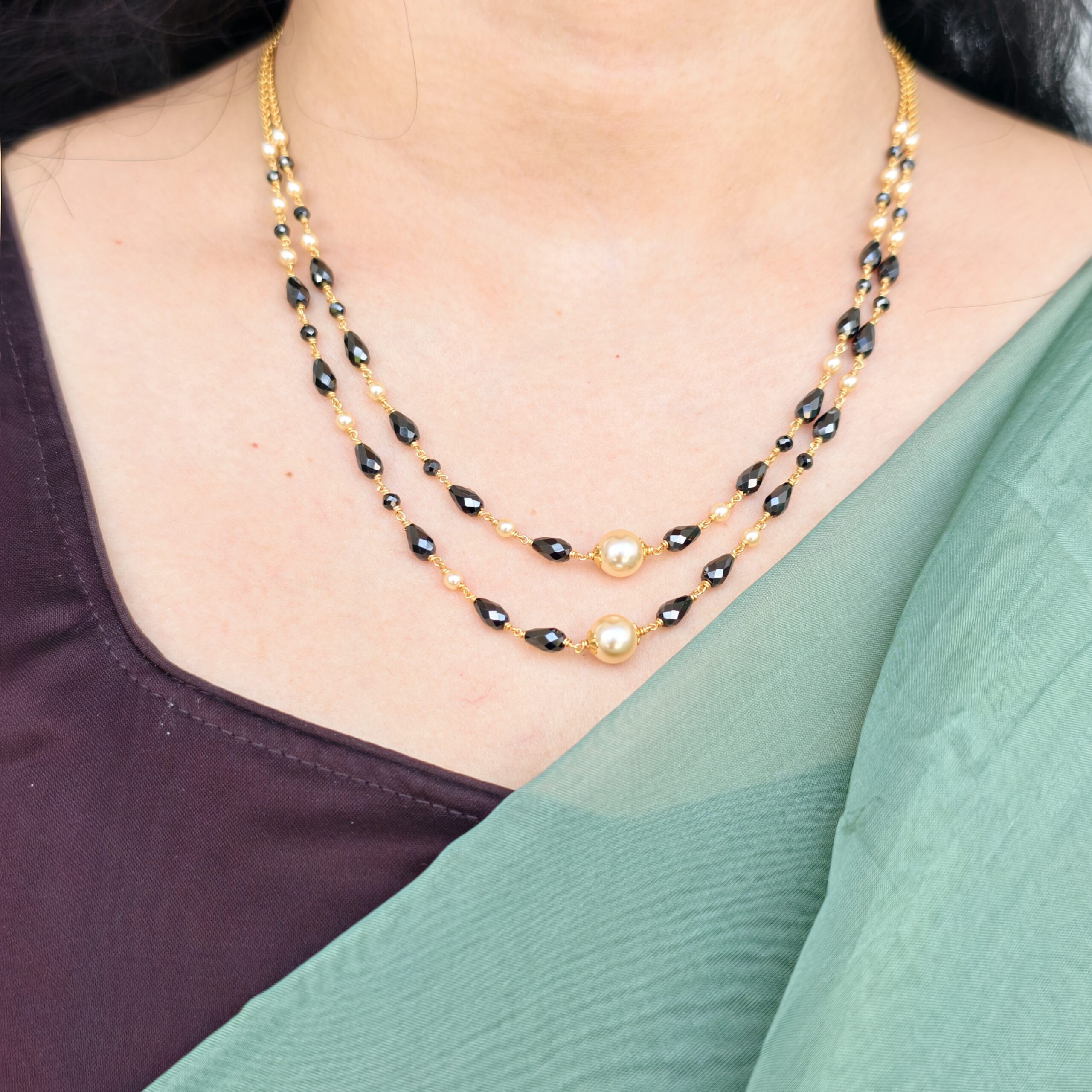 Be the first to review “fj2029 black czs with swarovski pearls 2 lines black beads chain”