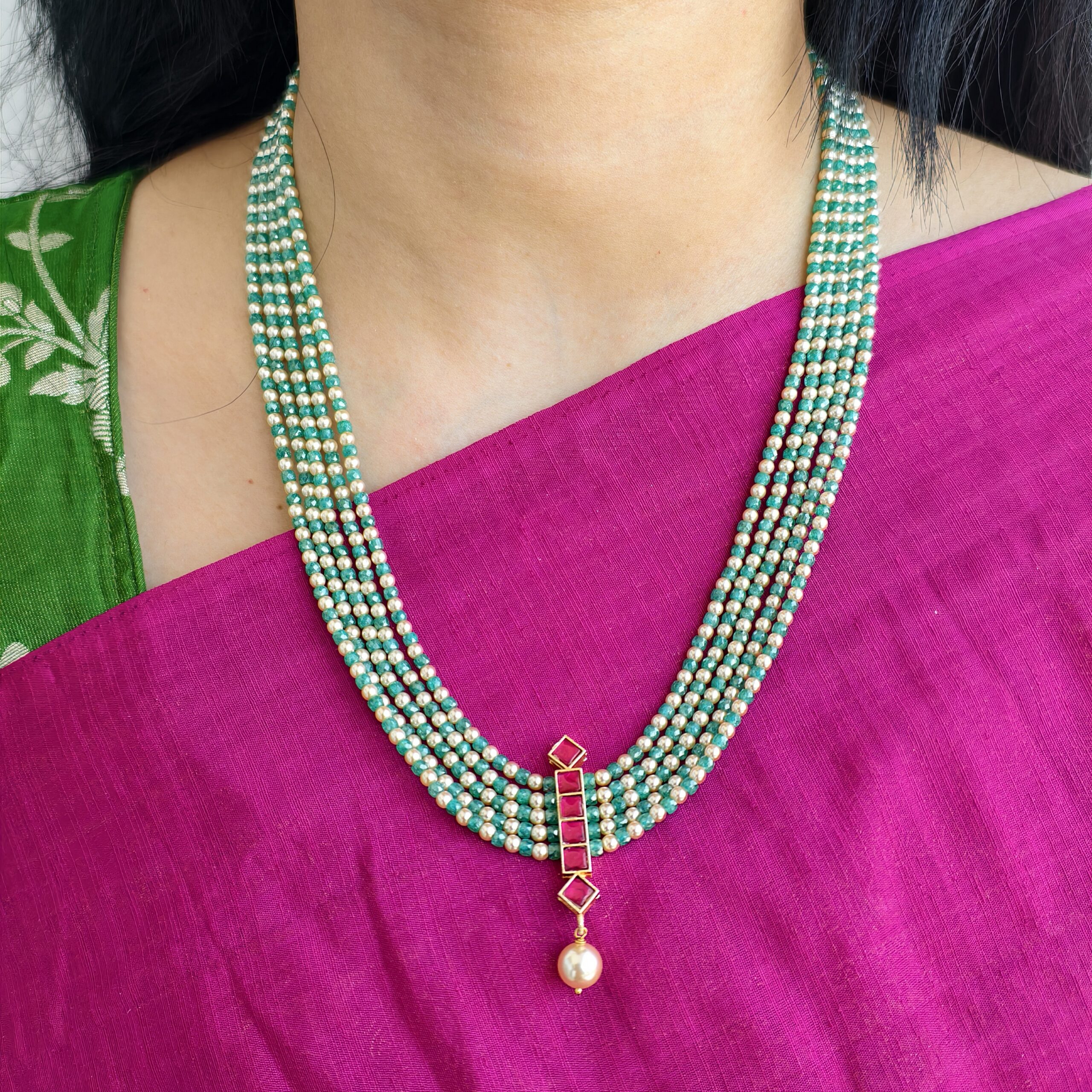 fj2225 jadav kundan ruby stone with swarovski pearl with emerald green beads