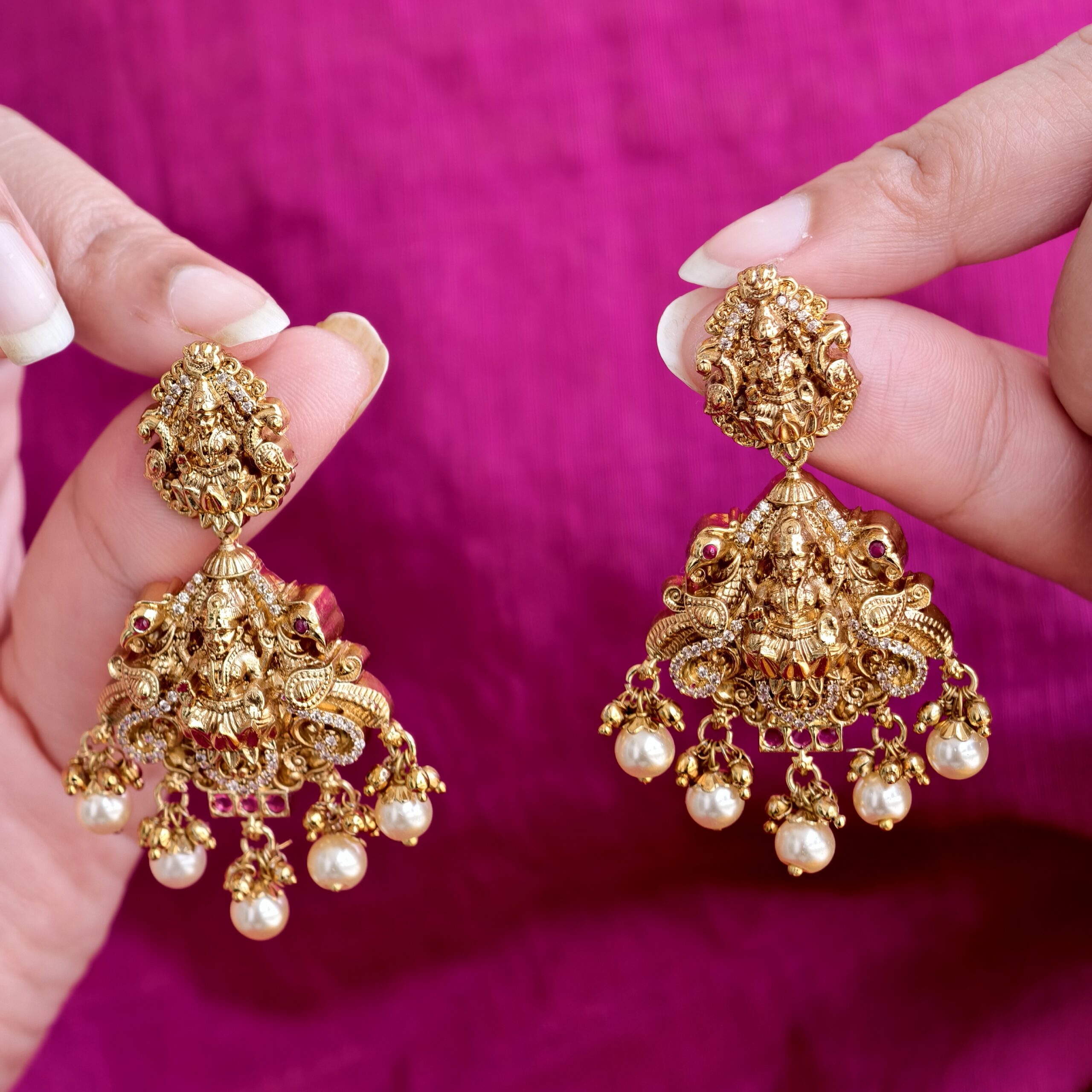 fj2349 lakshmi pendant raniharam with green onyx beads and matching earrings