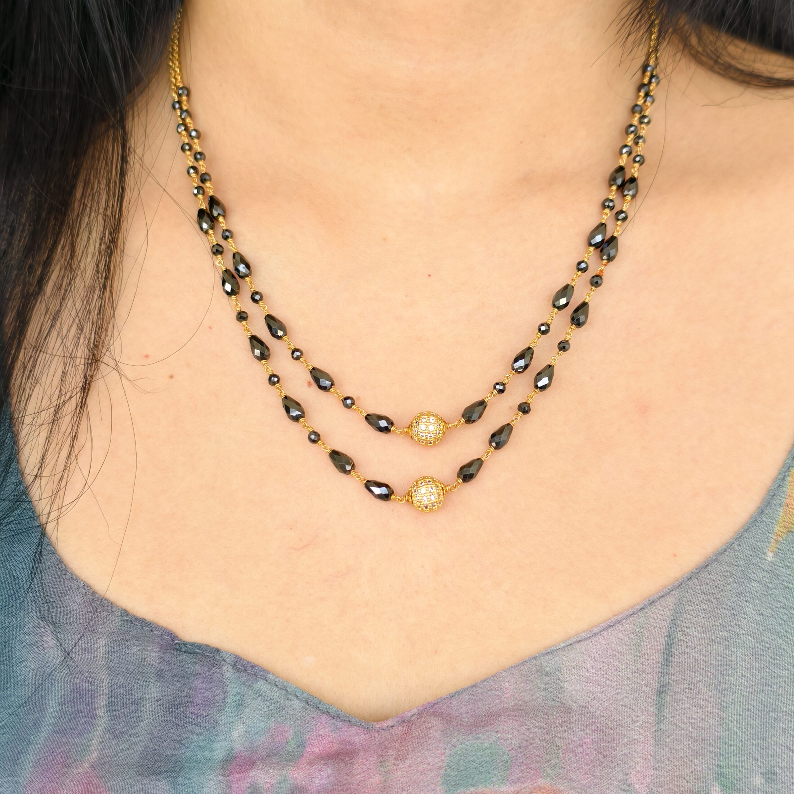Be the first to review “fj1921 CZ black drop with black diamonds 2 lines kattutheega making chain”