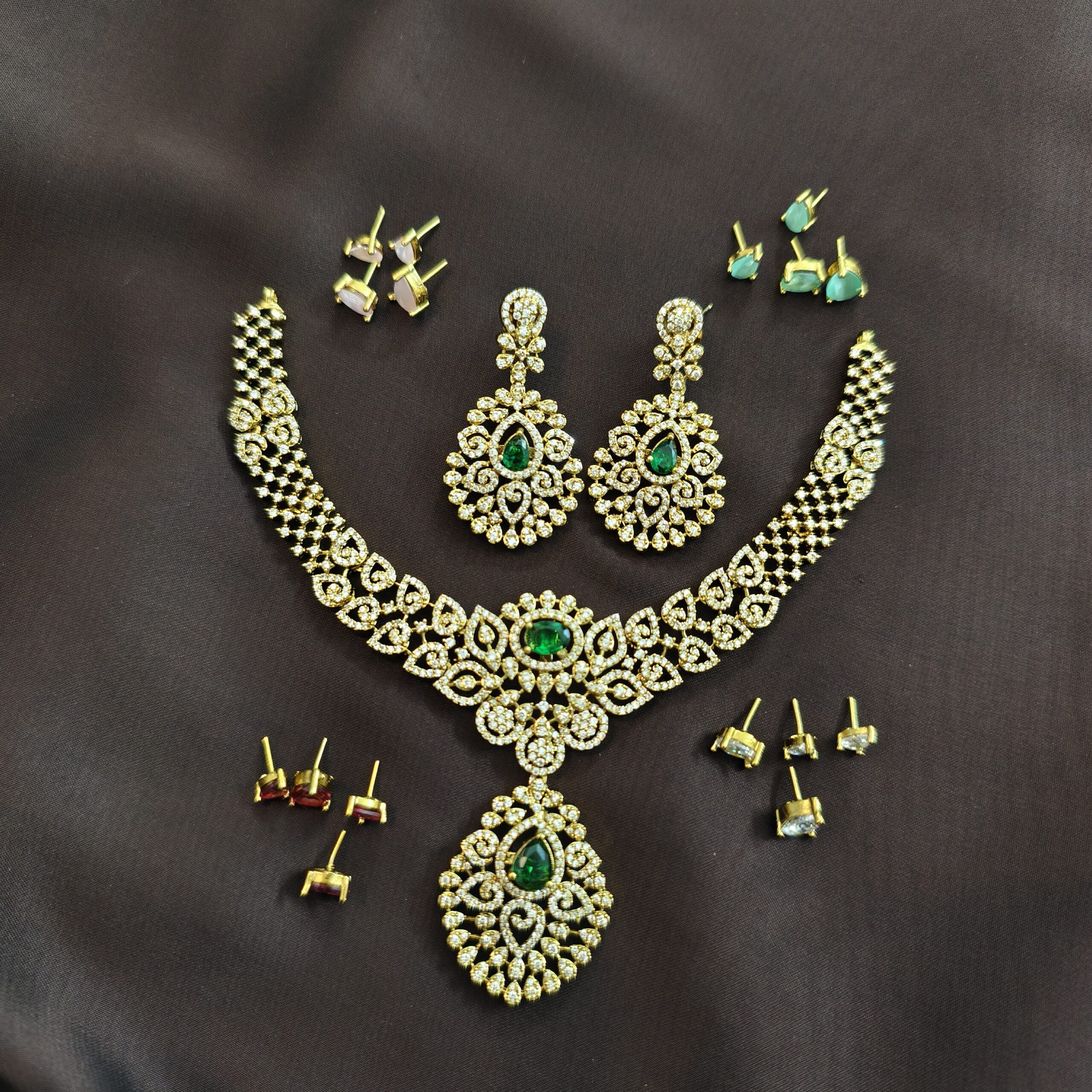 Be the first to review “victorian polish changeable stone neckset with big earrings and backchain”