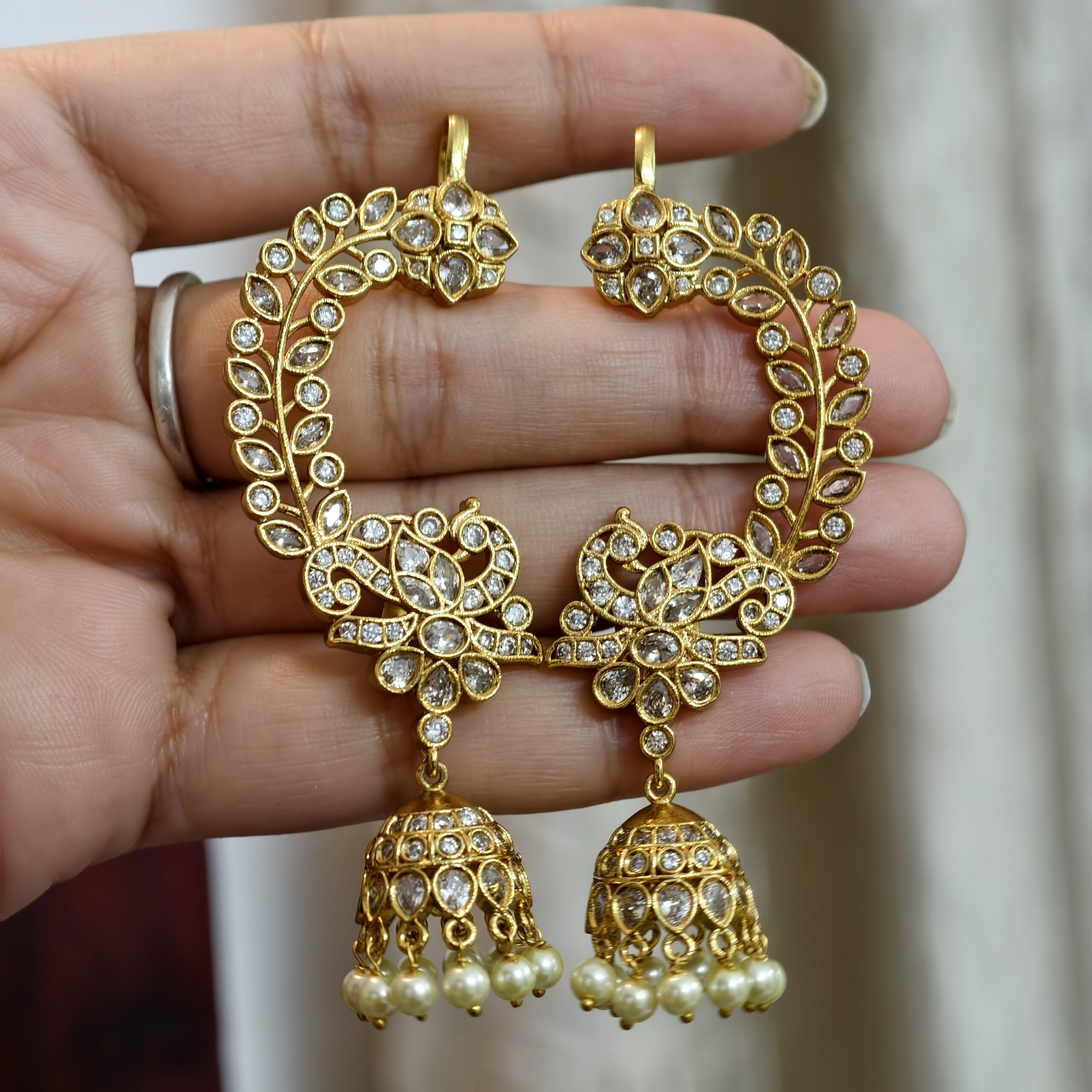 Ear cuff peacock earrings full white