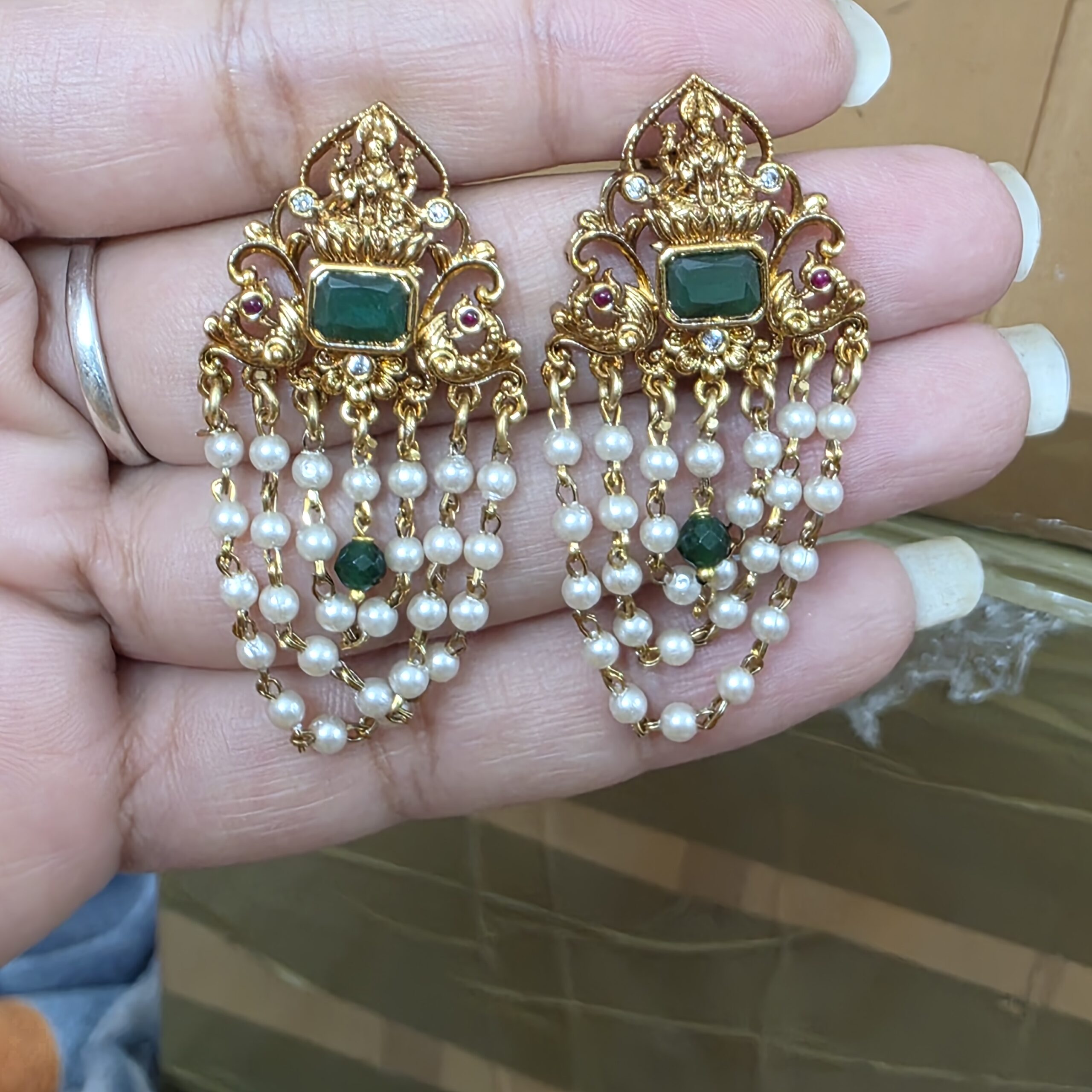 Be the first to review “lakshmi green stone moti earrings screwback”