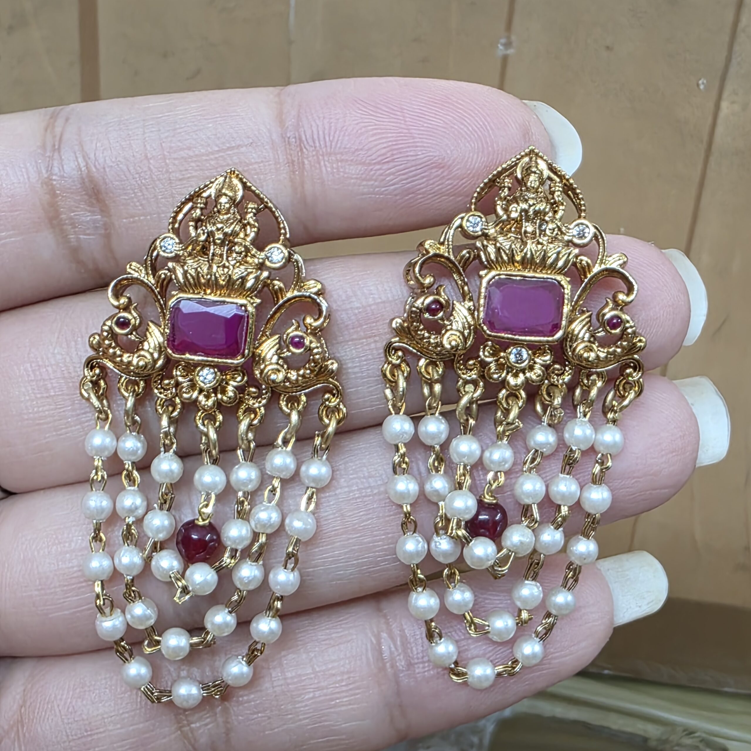 Be the first to review “lakshmi ruby stone moti earrings screwback”