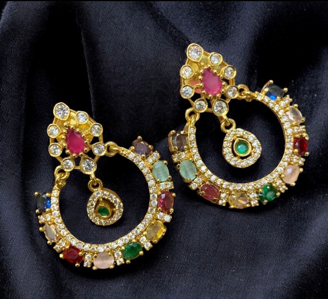 Multi colour chandbali pushback earrings