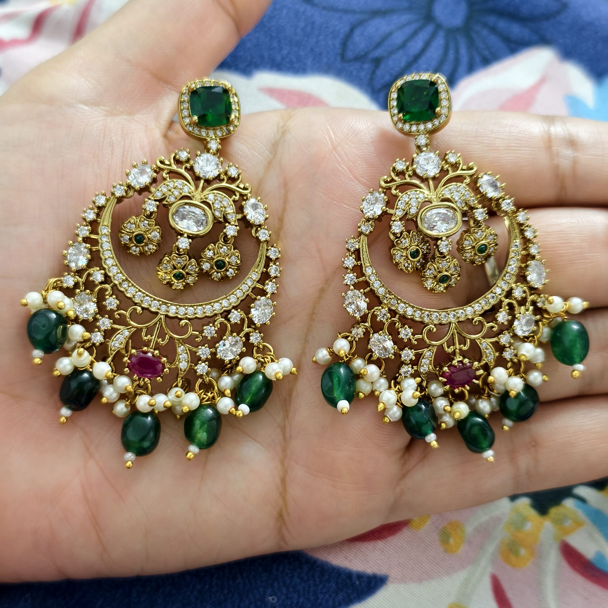 Be the first to review “party wear chandbali earrings with green beads”