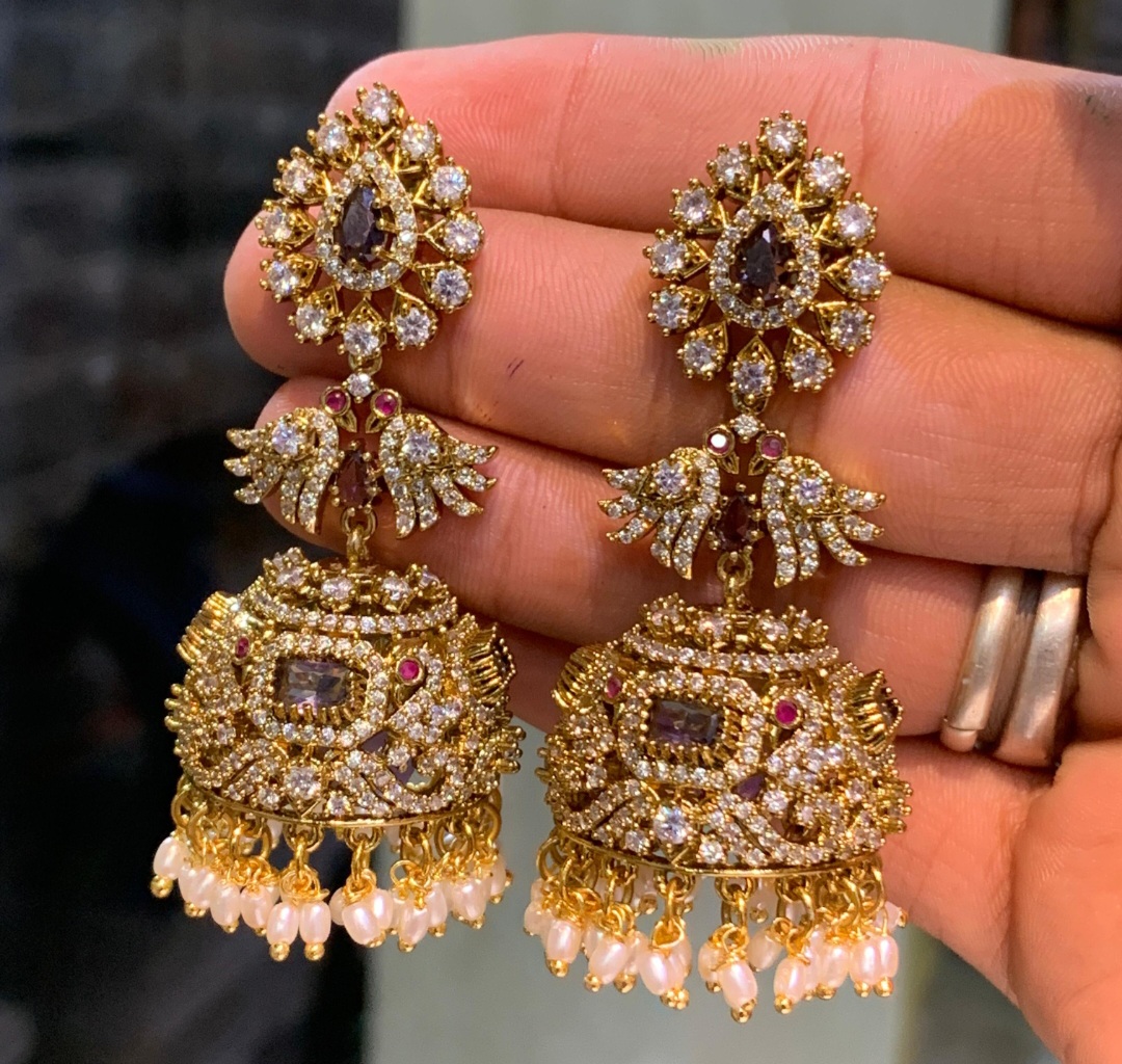 Be the first to review “party wear victorian jhumkas with push back purple colour”