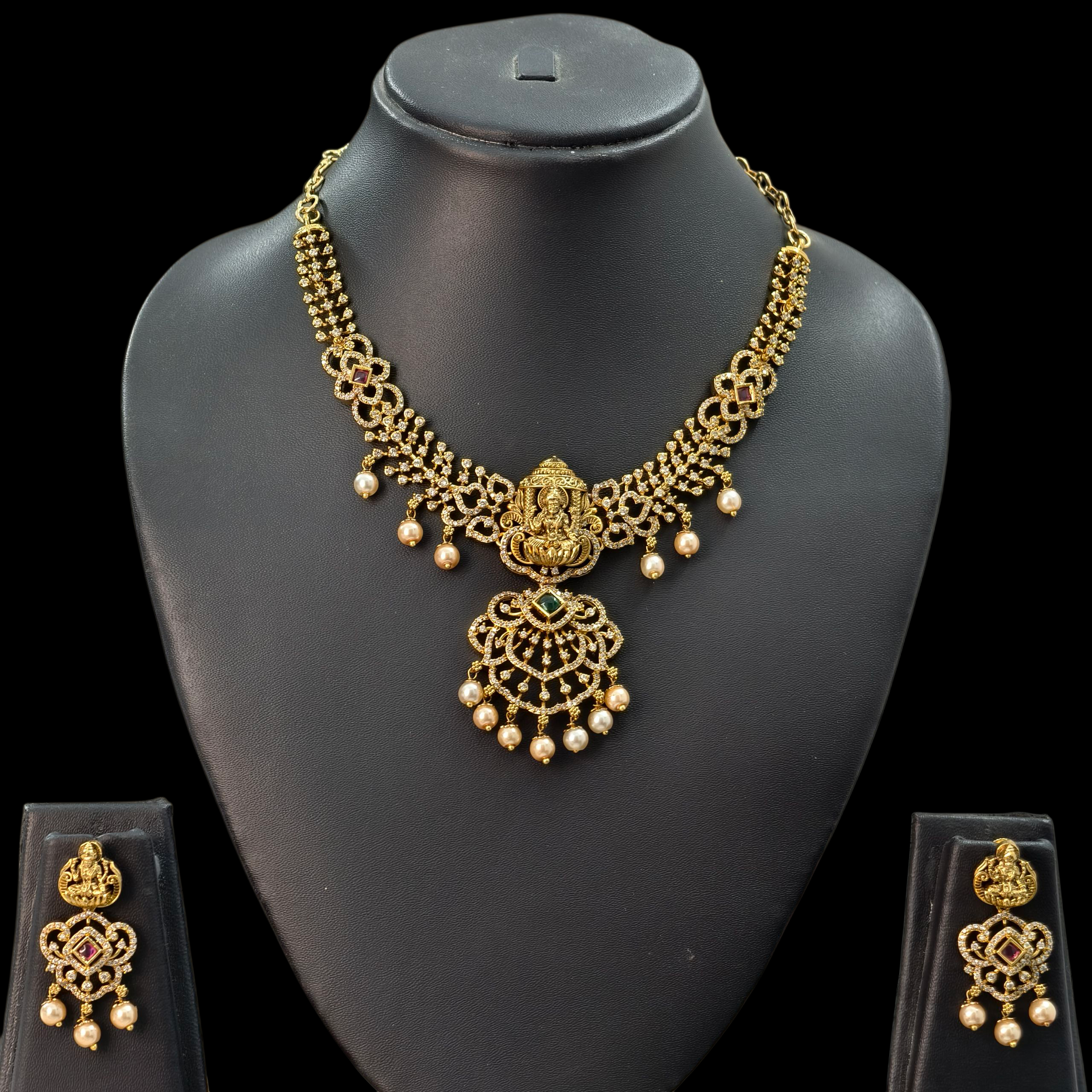 Be the first to review “fj1824 real gold look cz lakshmi neckset with screwback”