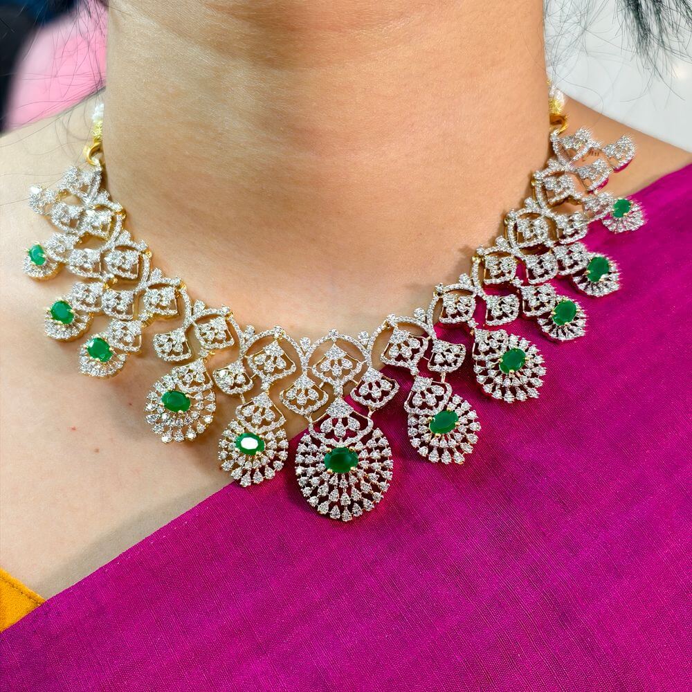 Be the first to review “2514 gj polish diamond replica green stone neckset pushback earrings”