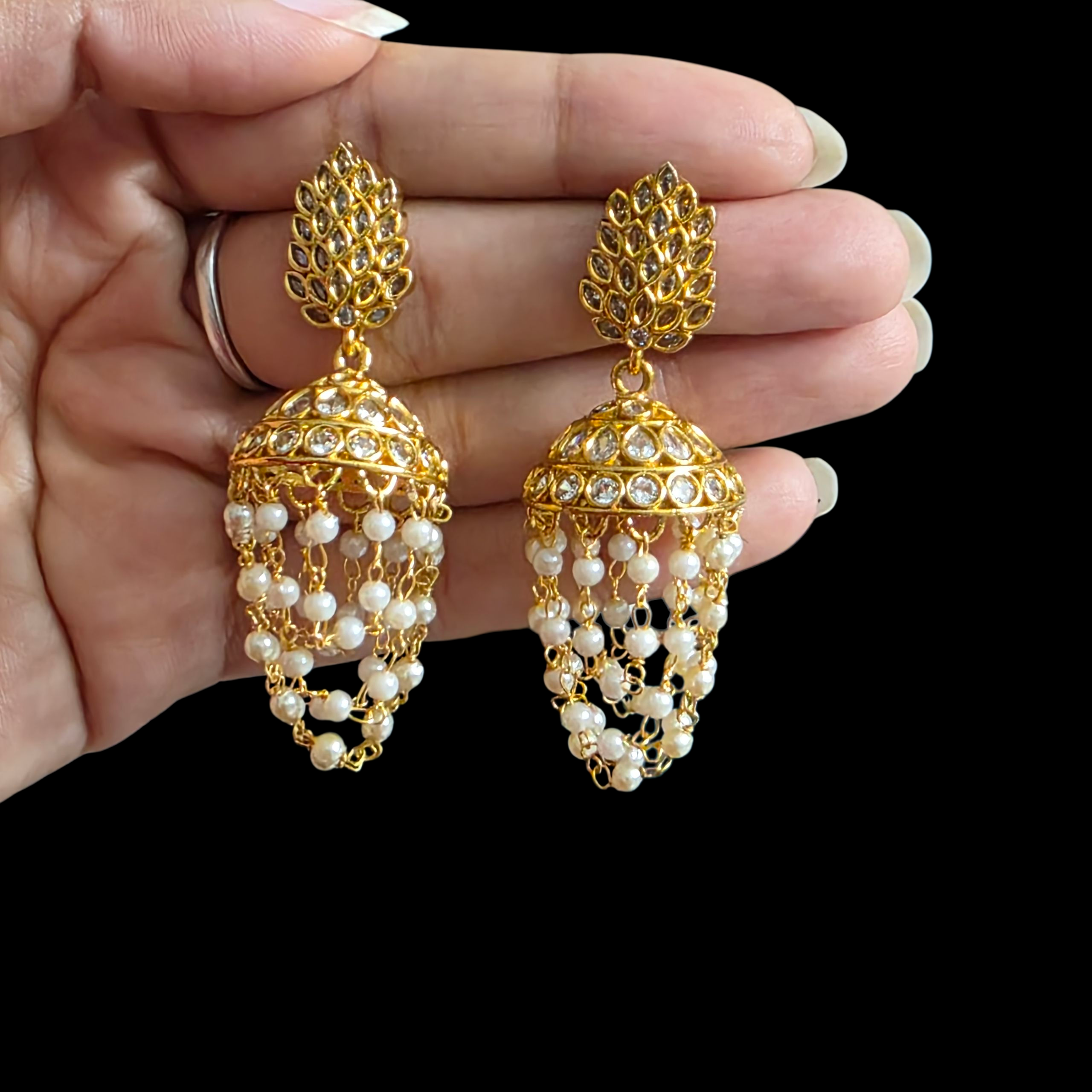 Be the first to review “fj1844 moti whitestone jhumka”