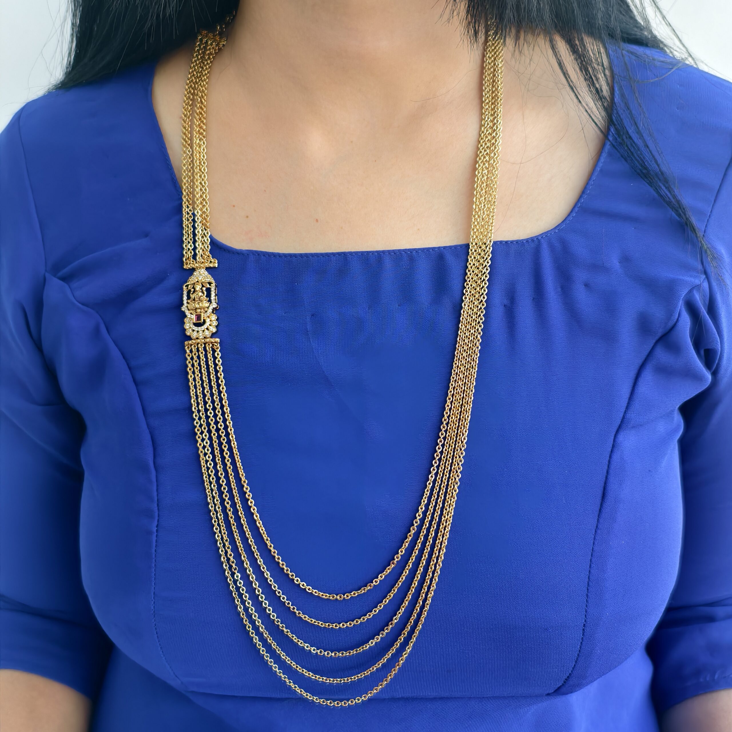 Be the first to review “fj1898 antique finish lakshmi ruby stone 5 step chandraharam 30inch”