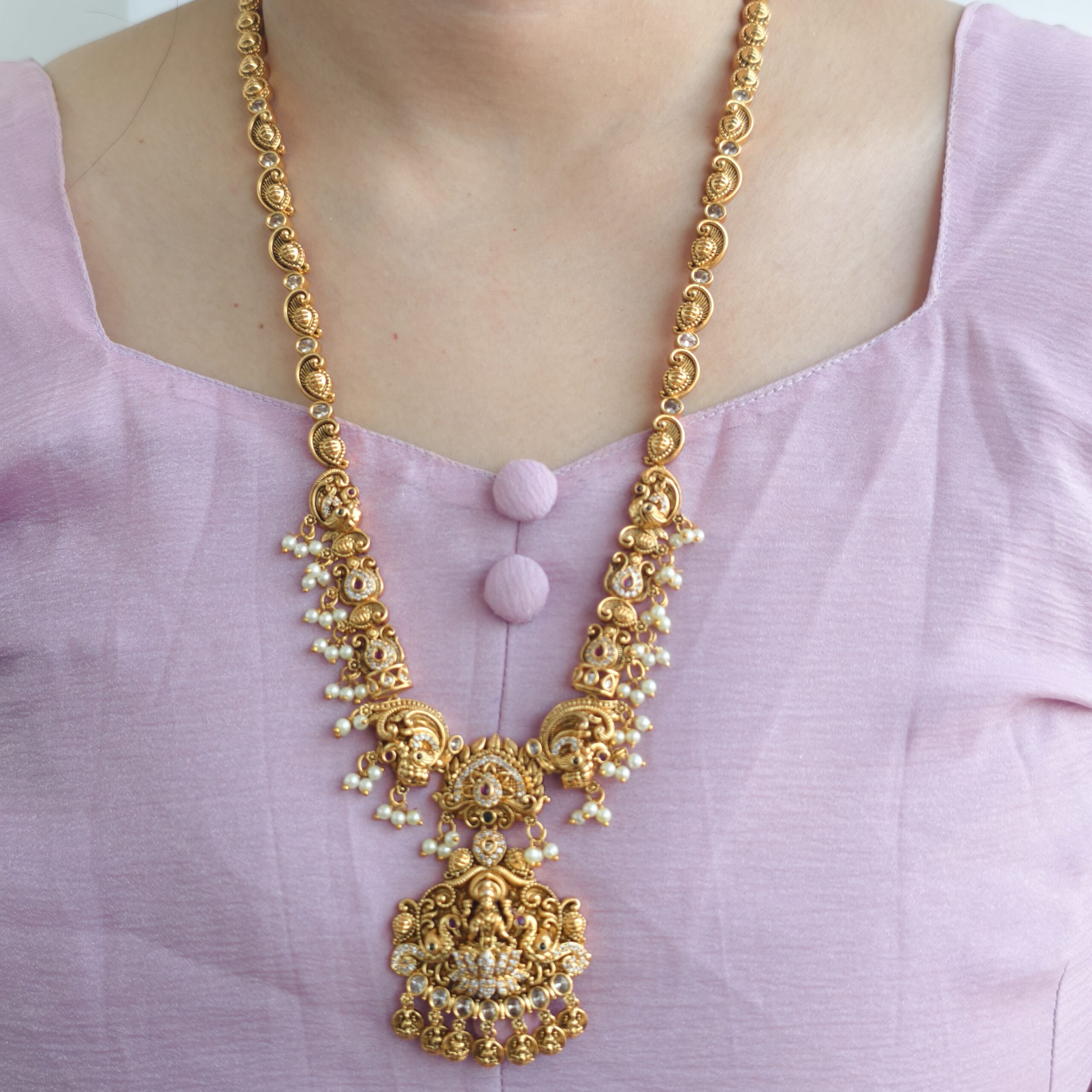 HomeLONG HARAM SETSfj1966 antiqur finish lakshmi dollar coin drops long haram with pushback jhumkas