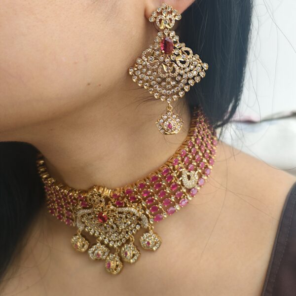 HomeNECK WEARRuby stonefj2036 antique finish lakshmi glass ruby stone neckset with backchain and screwback earrings