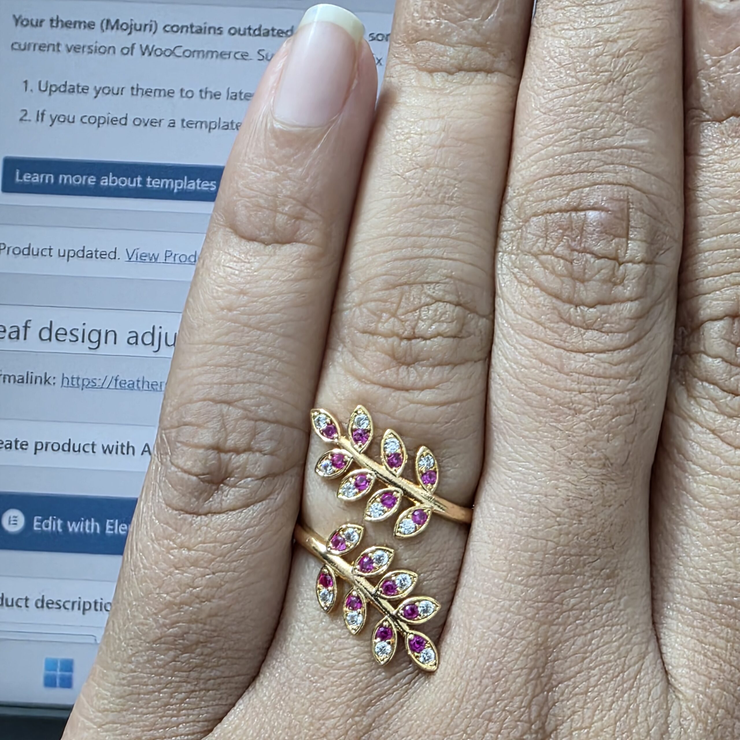 Be the first to review “fj2048 leaf design adjustable finger ring (ruby white)”