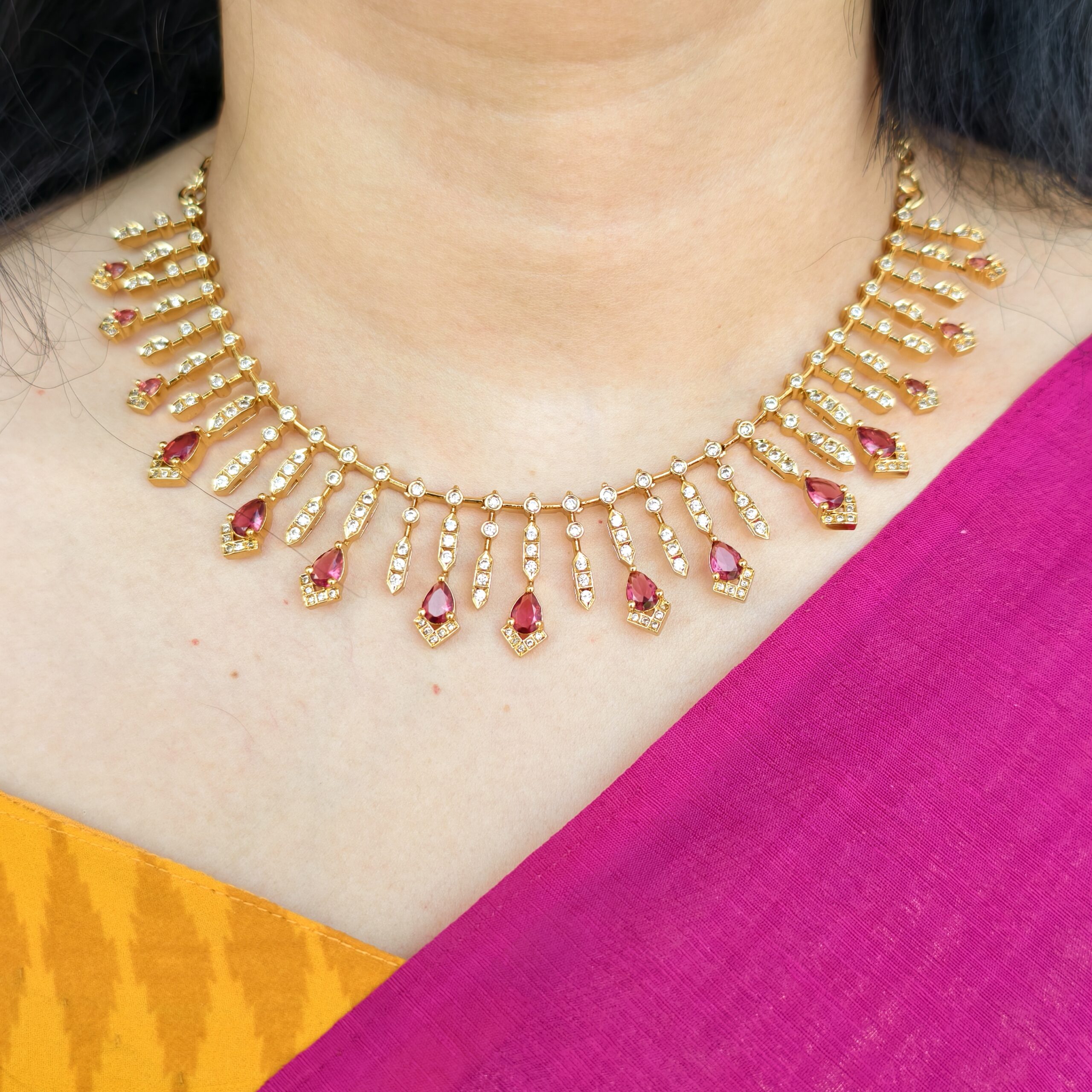 Be the first to review “fj2071 ad glass ruby neckset premium quality with screw back earrings with backchain”