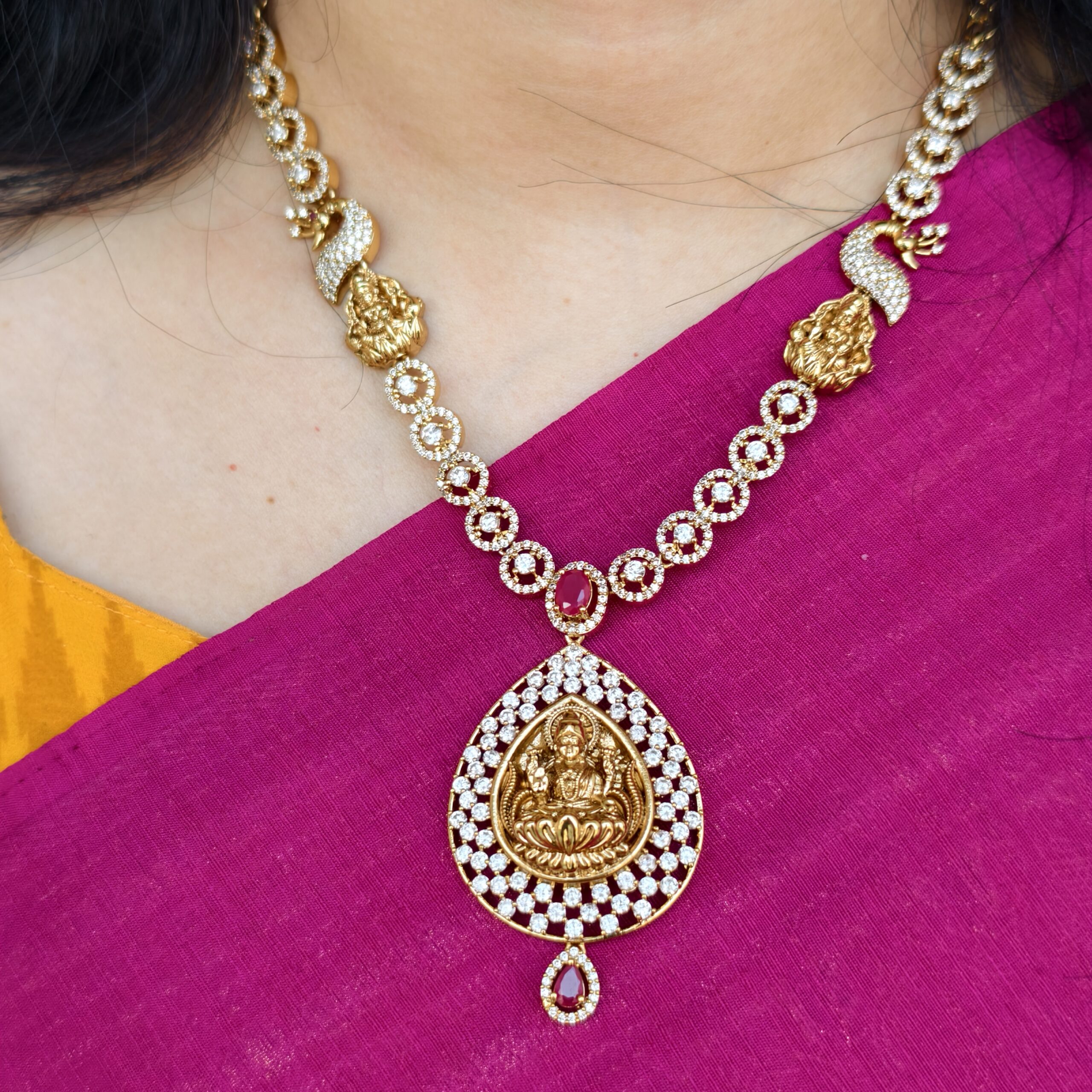fj2107 nakshi polish lakshmi dollar cz stone neckset with pushback studs with backchain