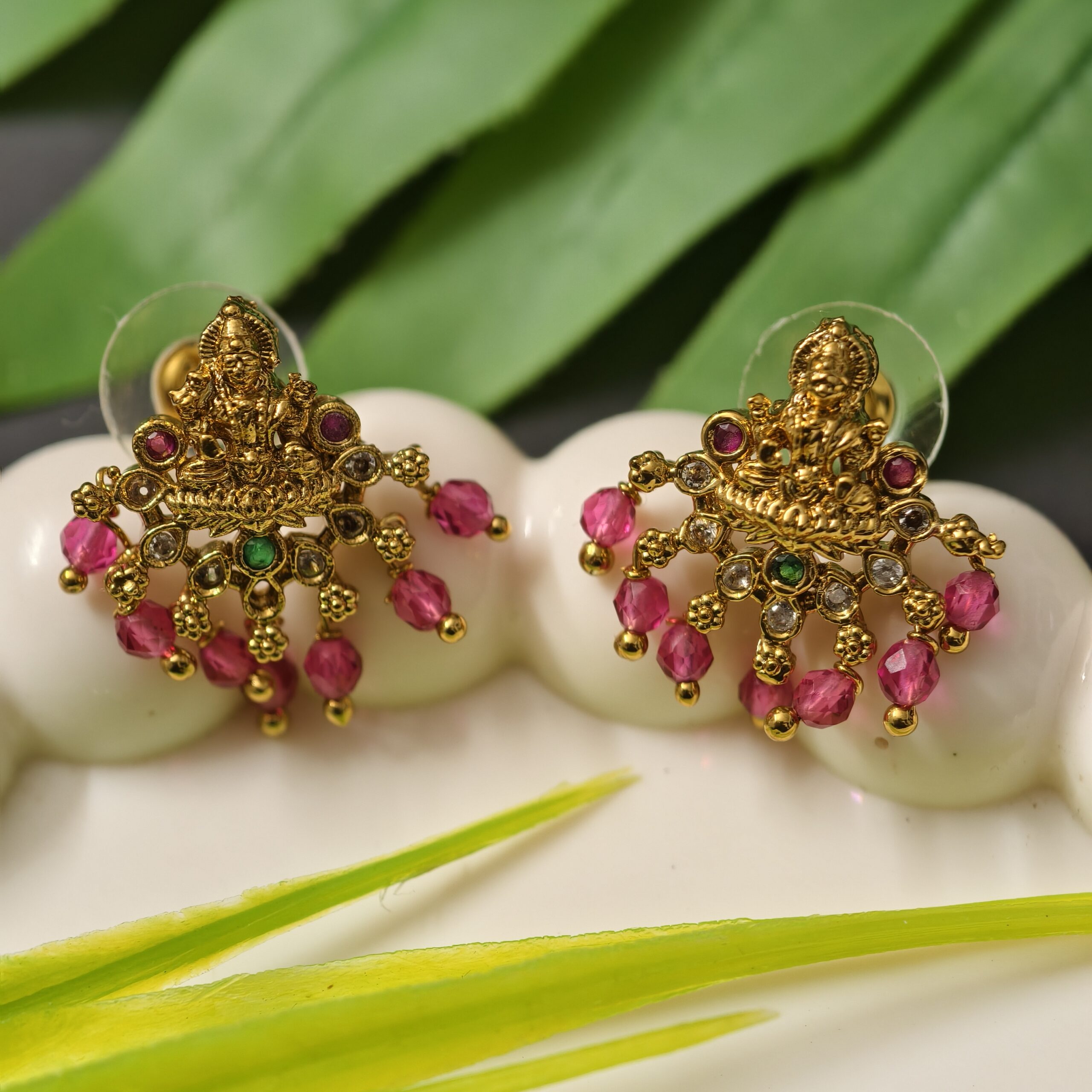 fj2185 lakshmi studs with ruby hangings pushback