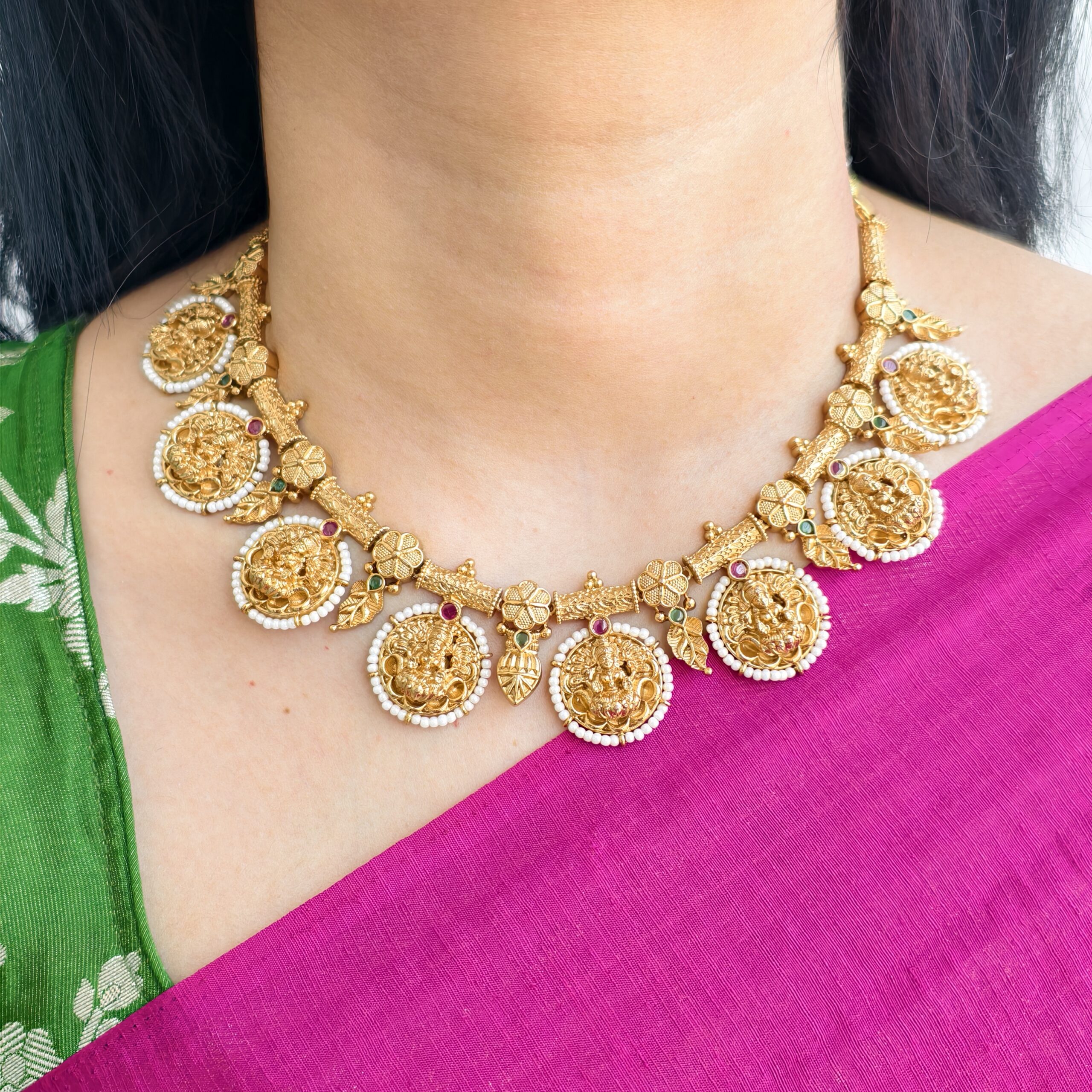 fj2186 gold look alike traditional vintage neckset with pushback studs