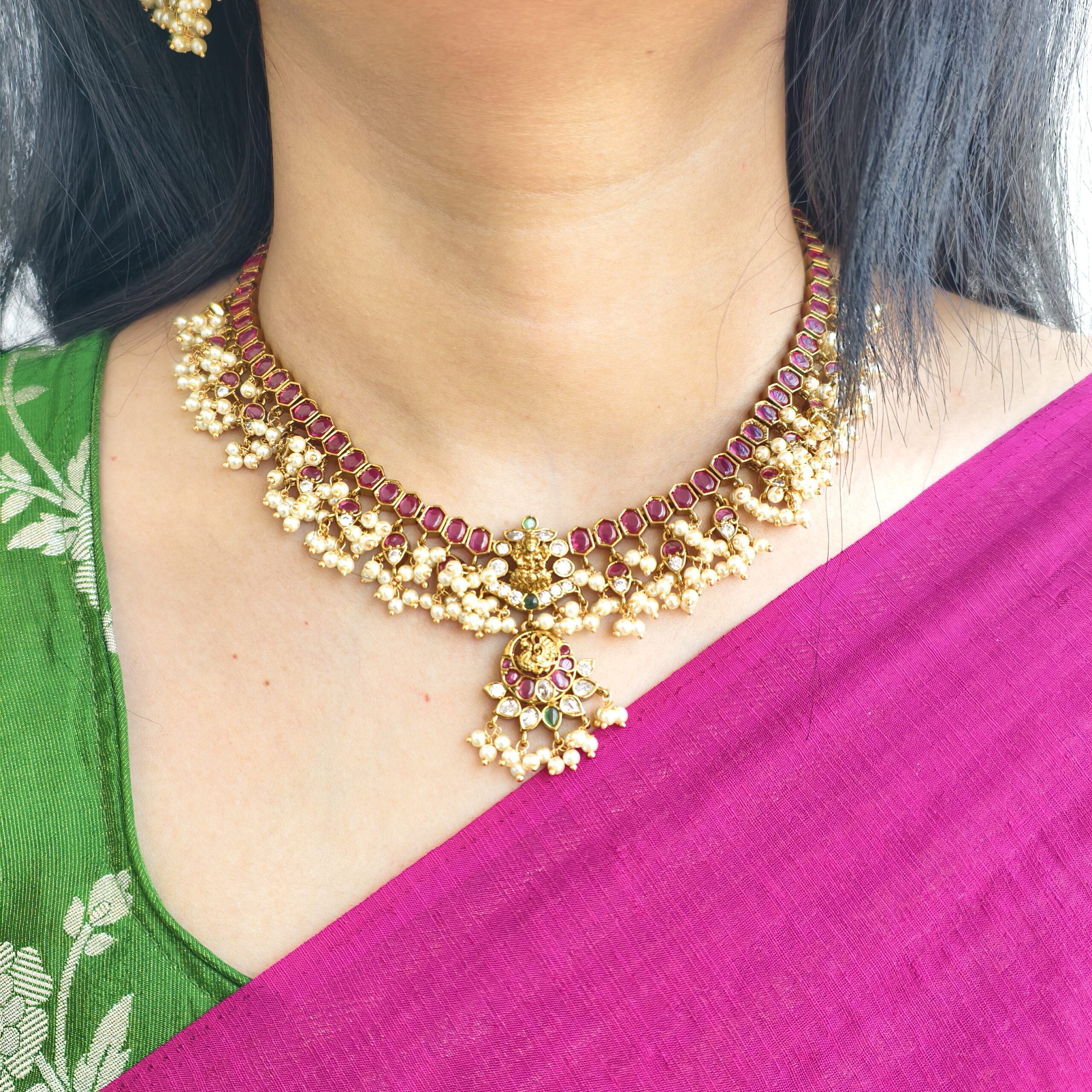 Be the first to review “fj2196 antique finish lakshmi guttapusalu neckset with pushback earrings”