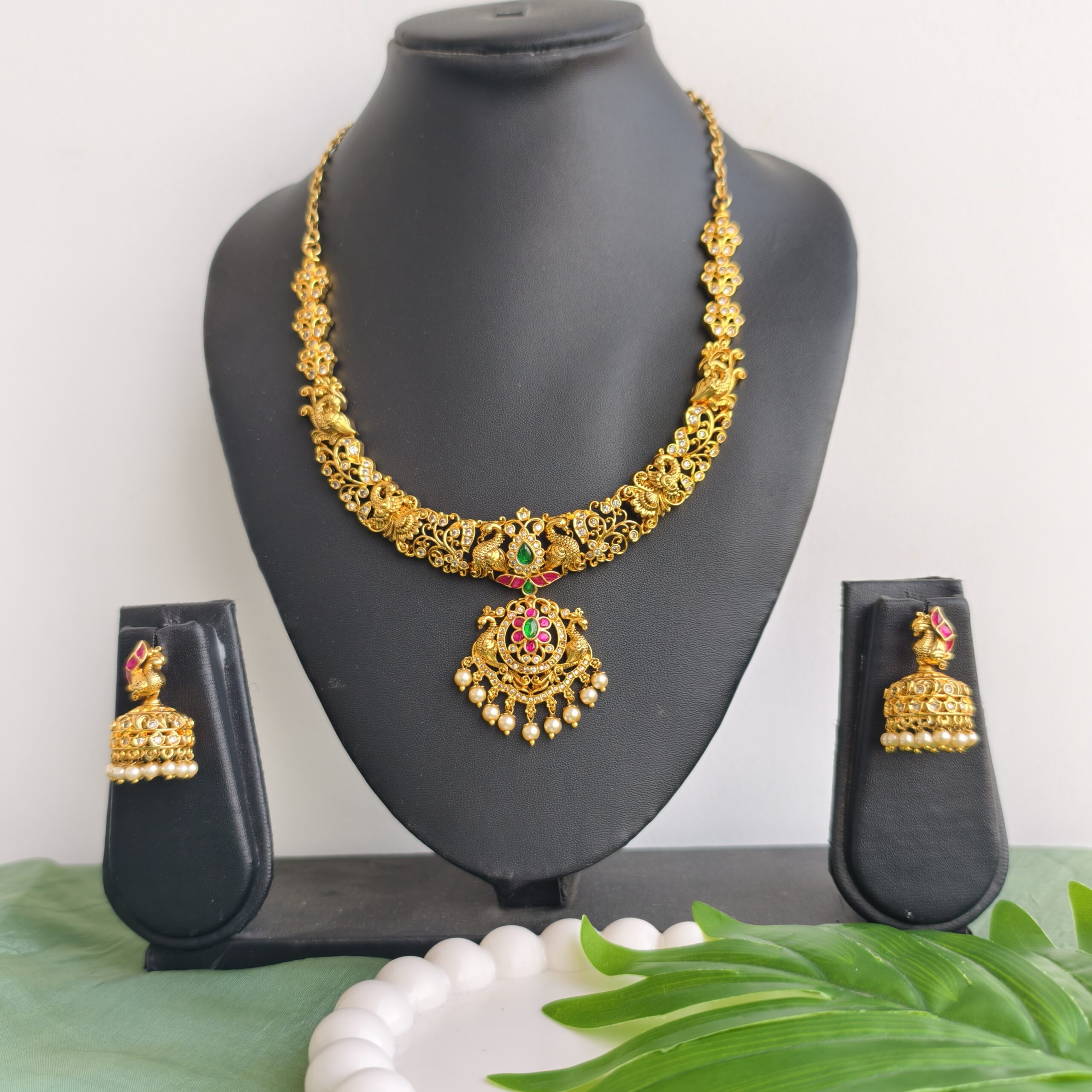 Be the first to review “fj2222 jadav kundan real gold look neckset with screwback earrings and backchain”