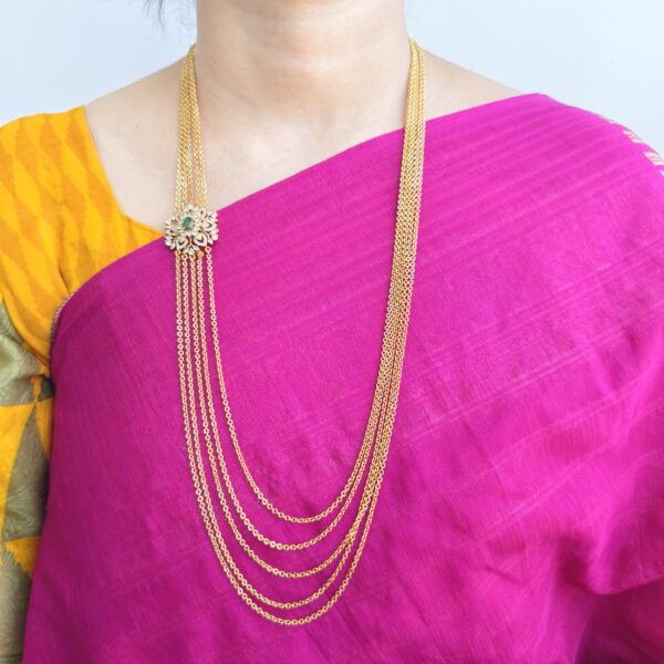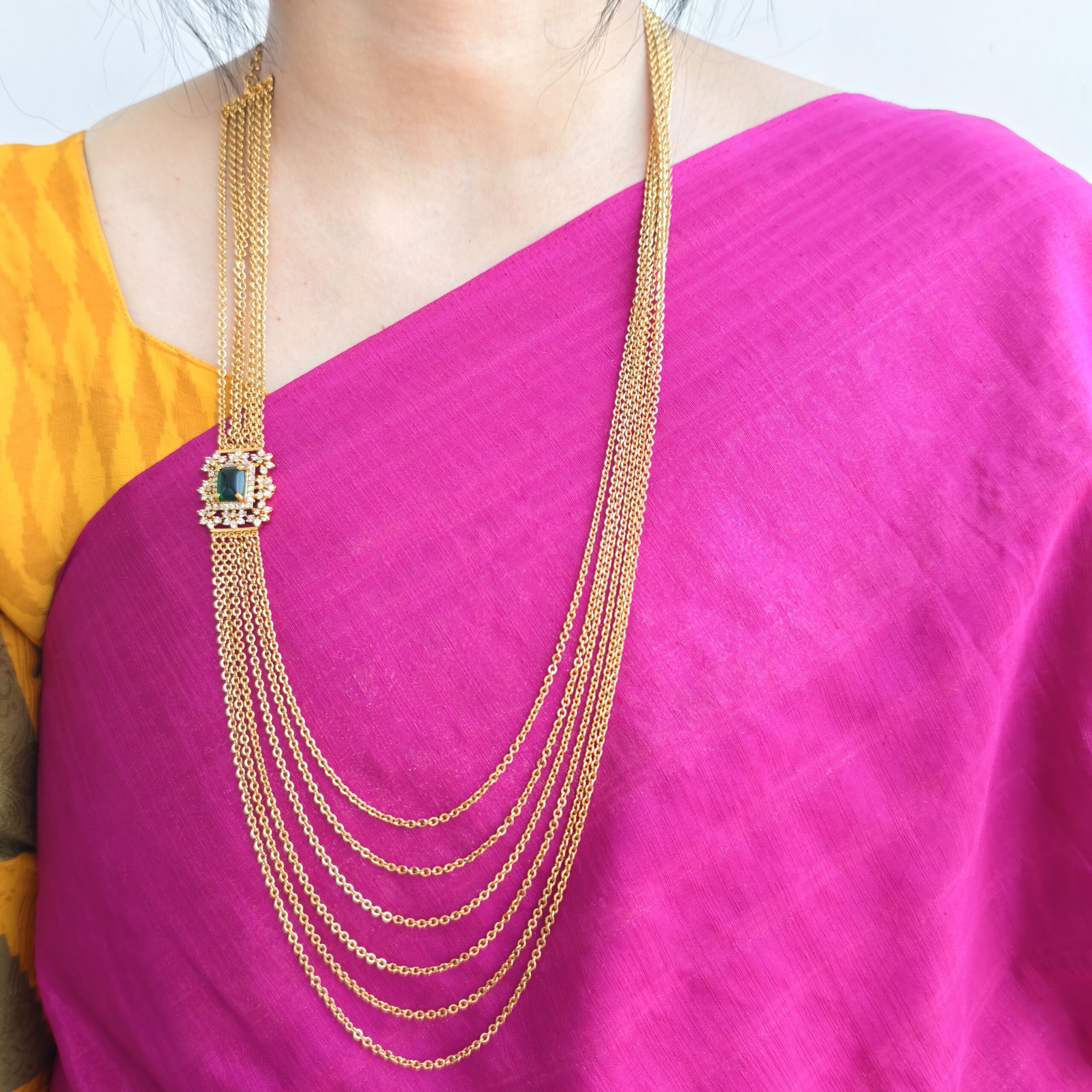 Be the first to review “fj2300 antique finish green stone side pendant 6 lines 30 inches chandraharam”
