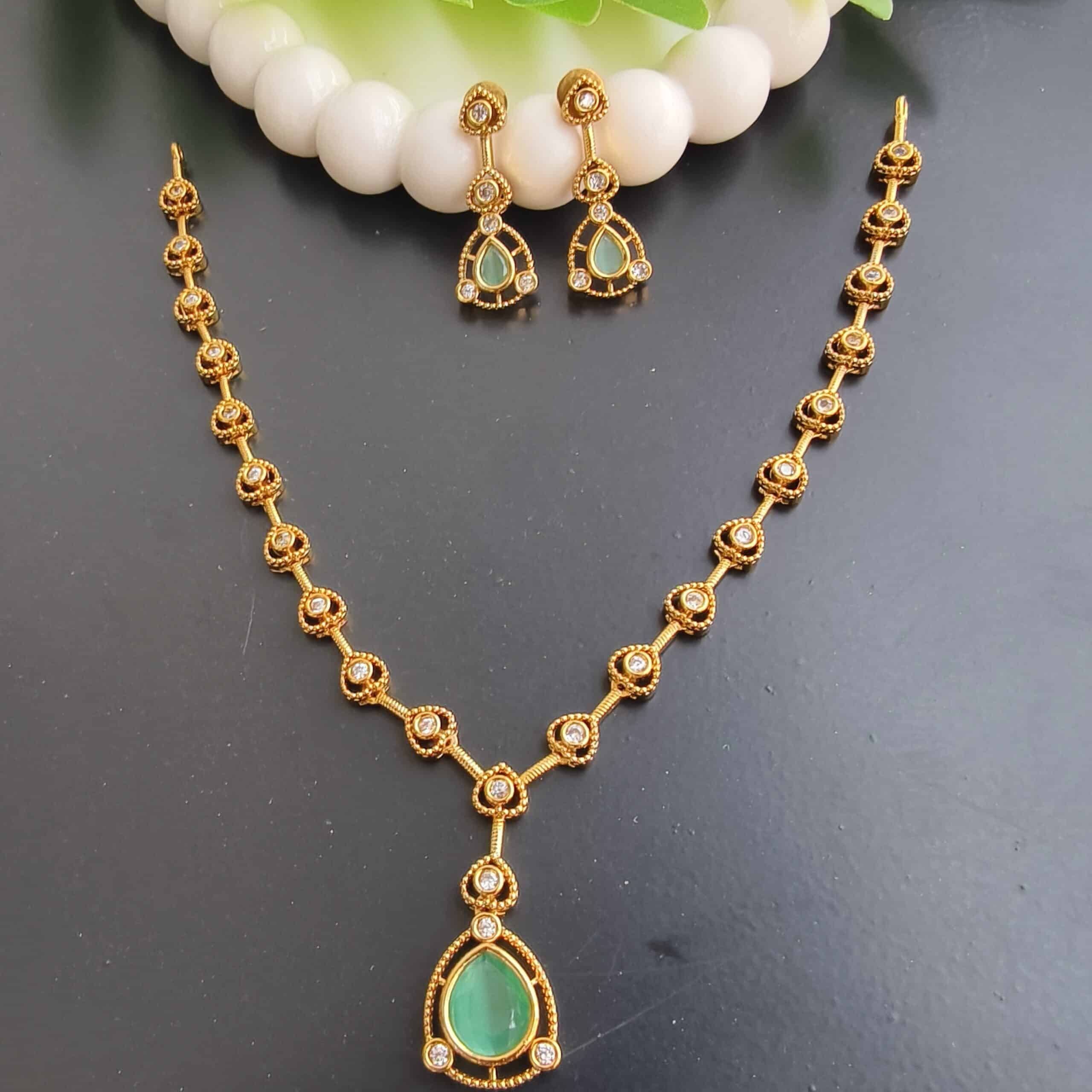 Be the first to review “fj2308 white and sea green stone neckset with back chain”