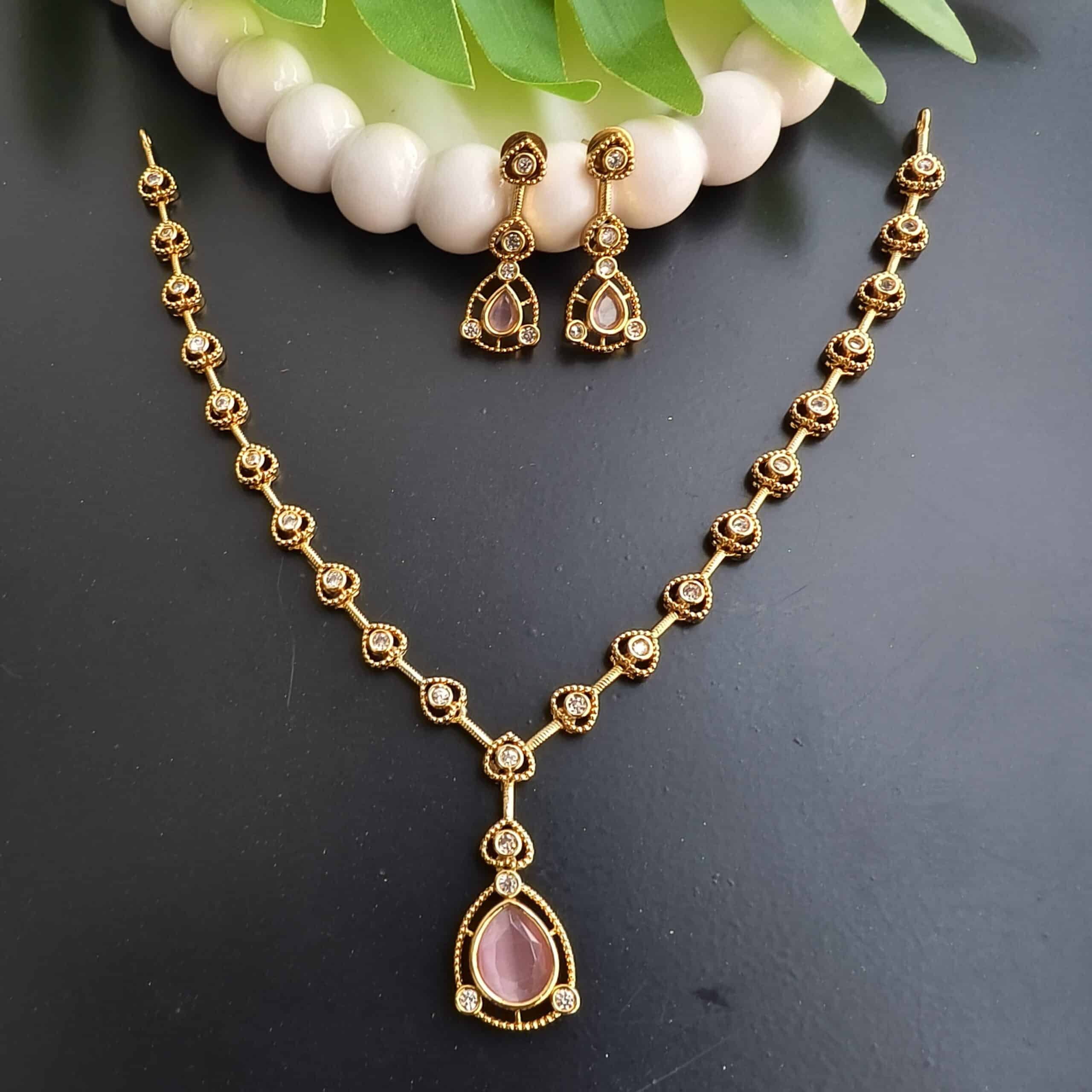 Be the first to review “fj2309 white and baby pink stone neckset with backchain”