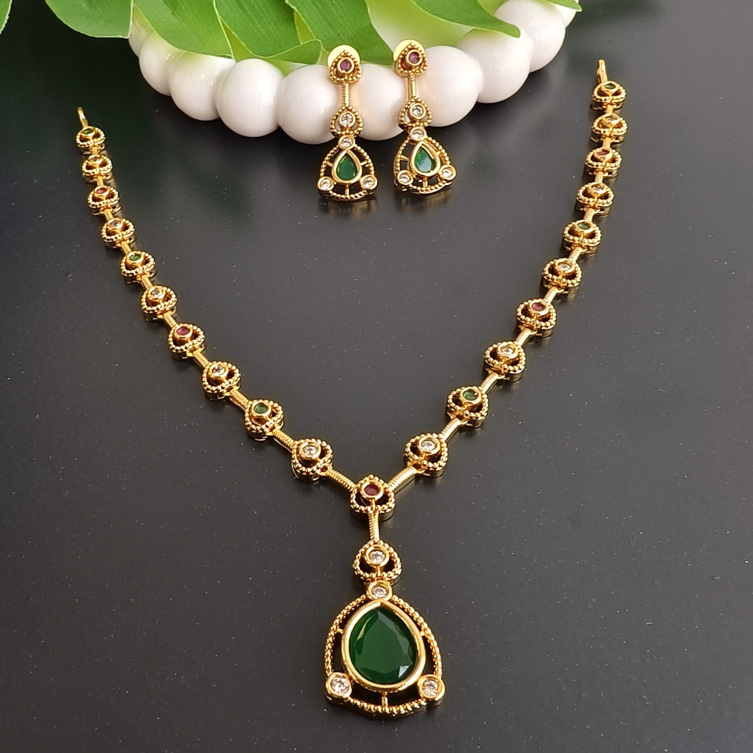 Be the first to review “fj2312 multi stone neckset with push back ear rings and back chain”