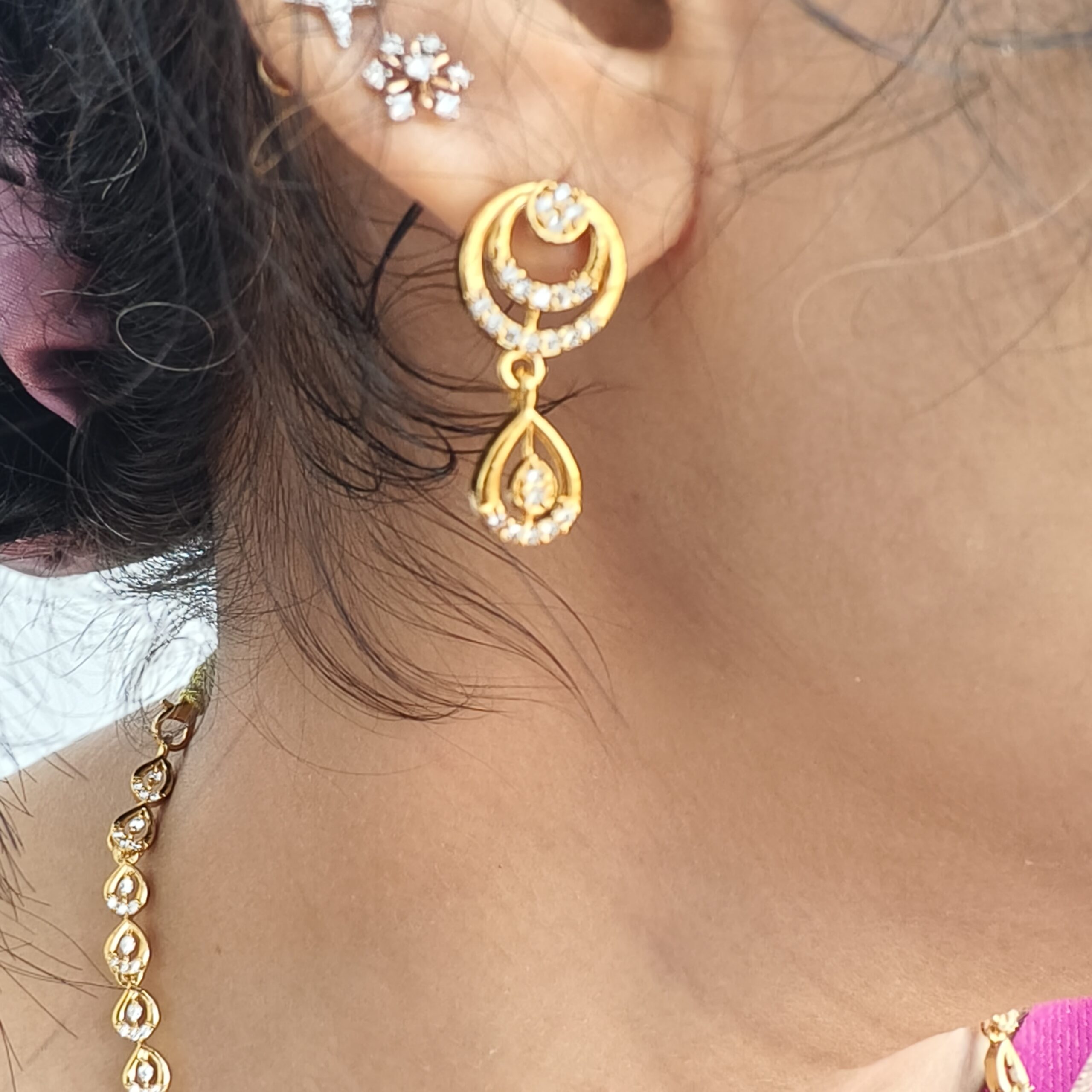 HomeLONG HARAM SETSfj2316 daimond look a like white stone mid length haram with push back ear rings