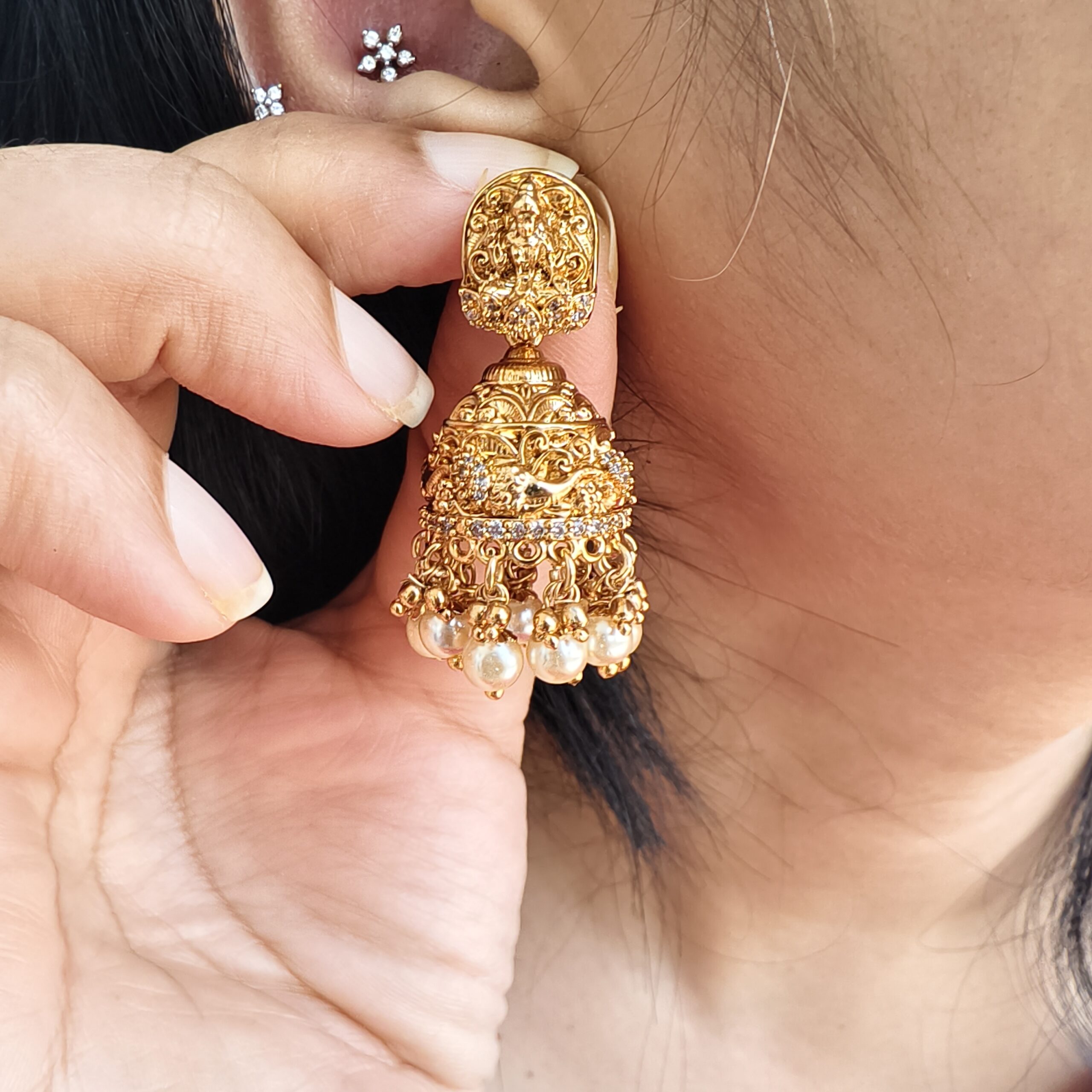 fj2324 real gold replica long haram set with backchain and screw back jhumkas