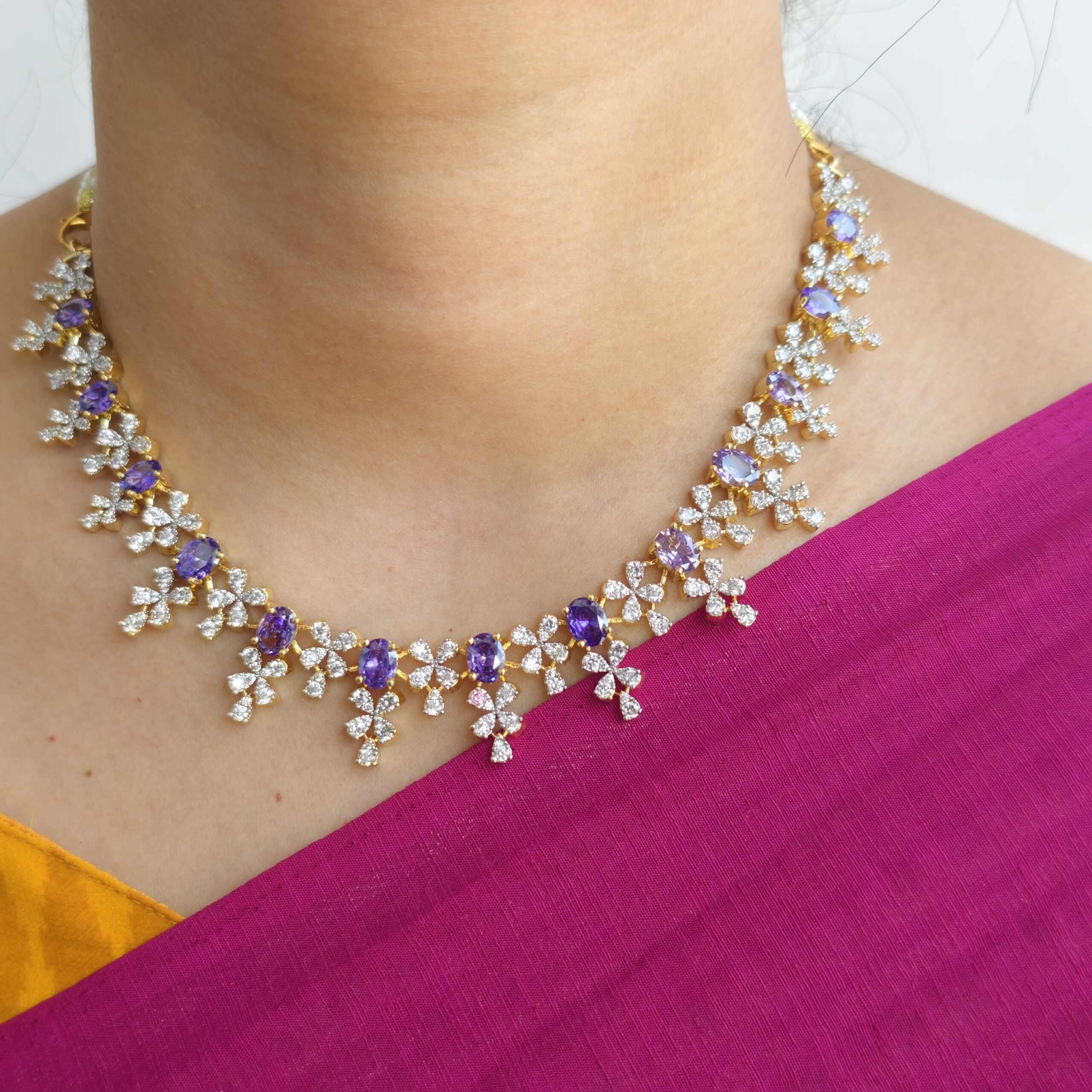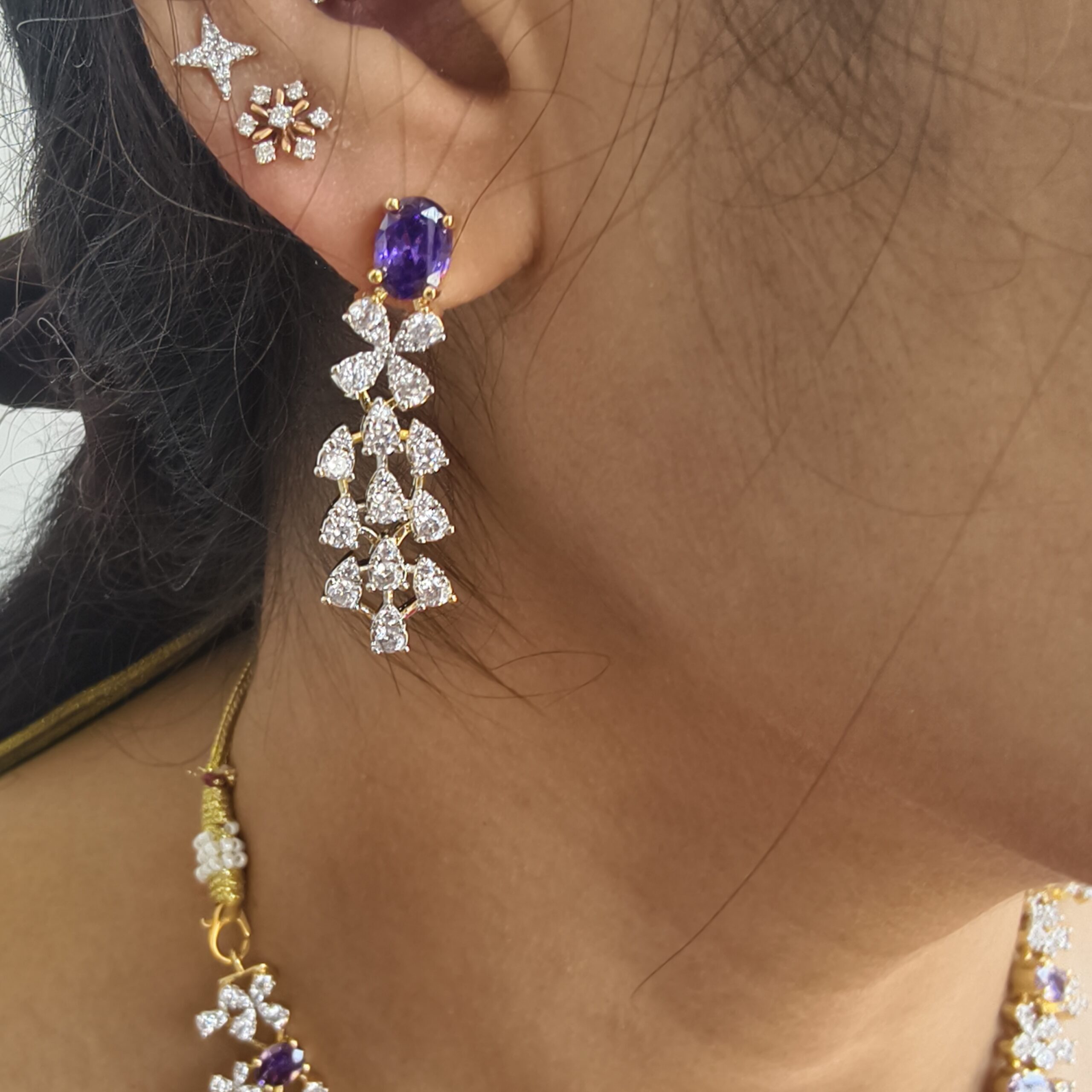 Be the first to review “fj2380 diamond replica white and purple stone gj polish neckset with pushback earrings”