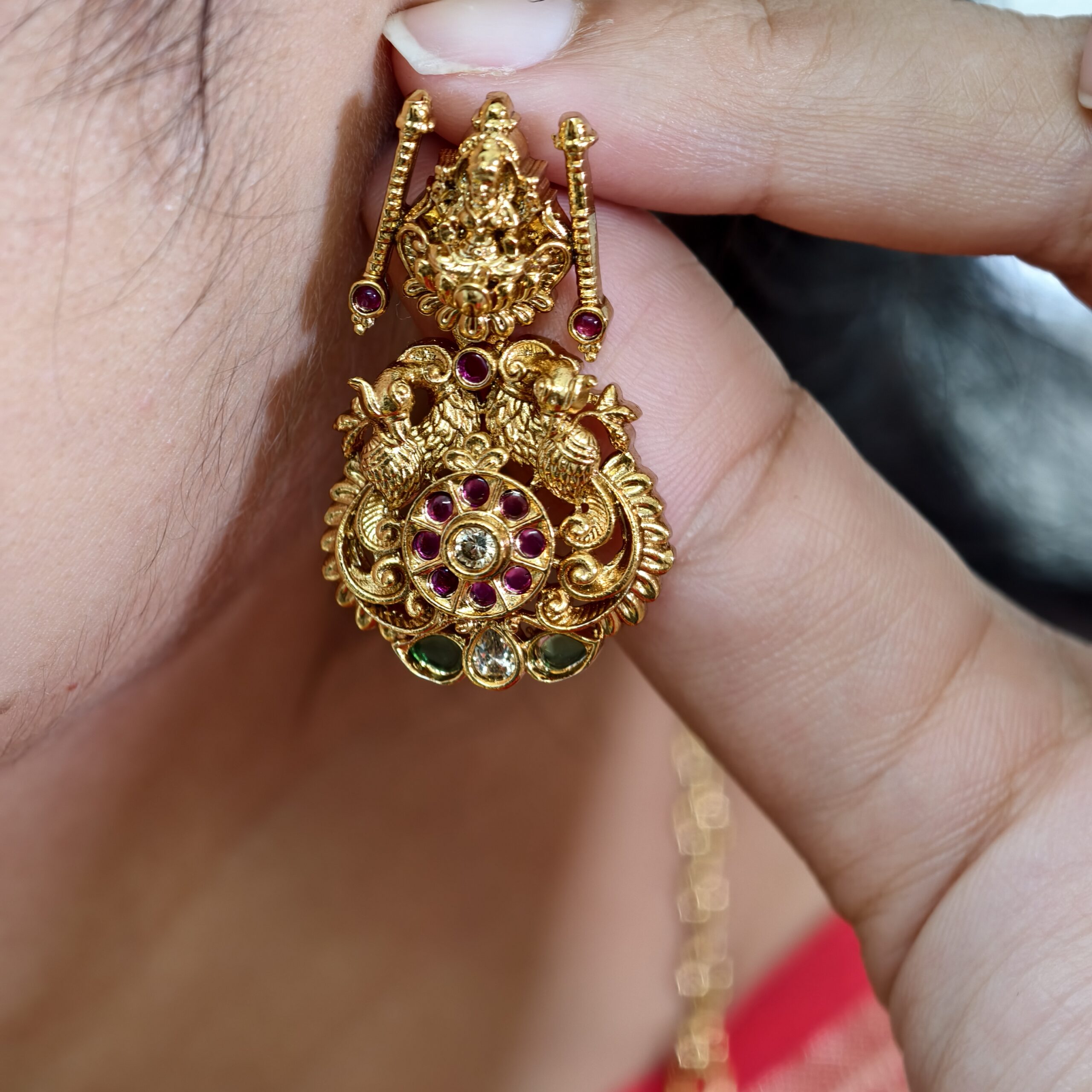 fj2430 real gold look bottumala with backchain and screwback earrings