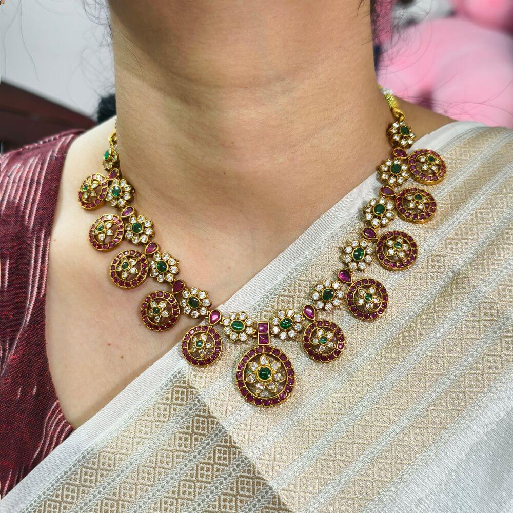 Be the first to review “fj2470 Antique finish multicolor jadav copy bottumala with pushback earrings”