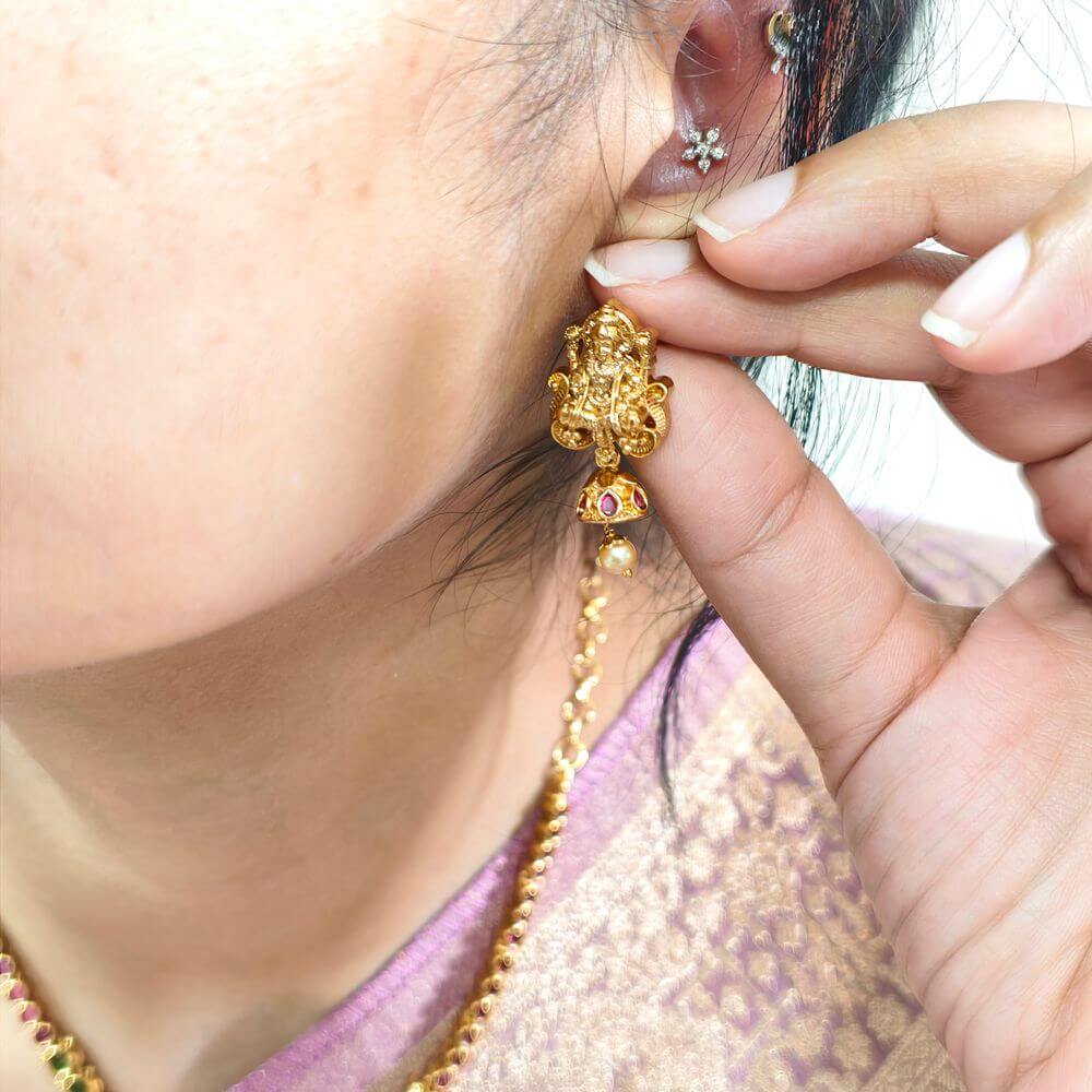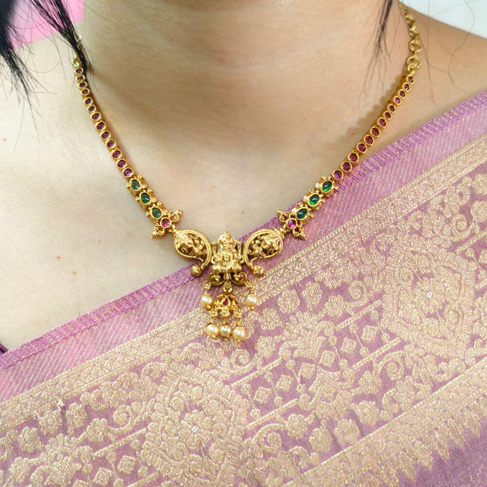 fj2503 real gold look simple rubi and green lakshmi neckset with screwback earrings