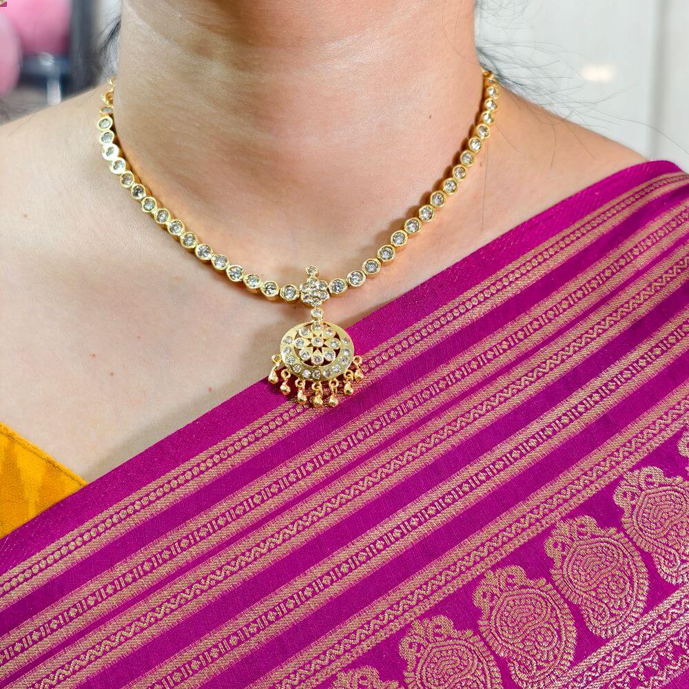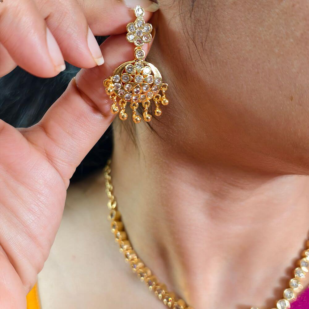 fj2561 semi panchaloham whitestone neckset with backchain and screwback earrings