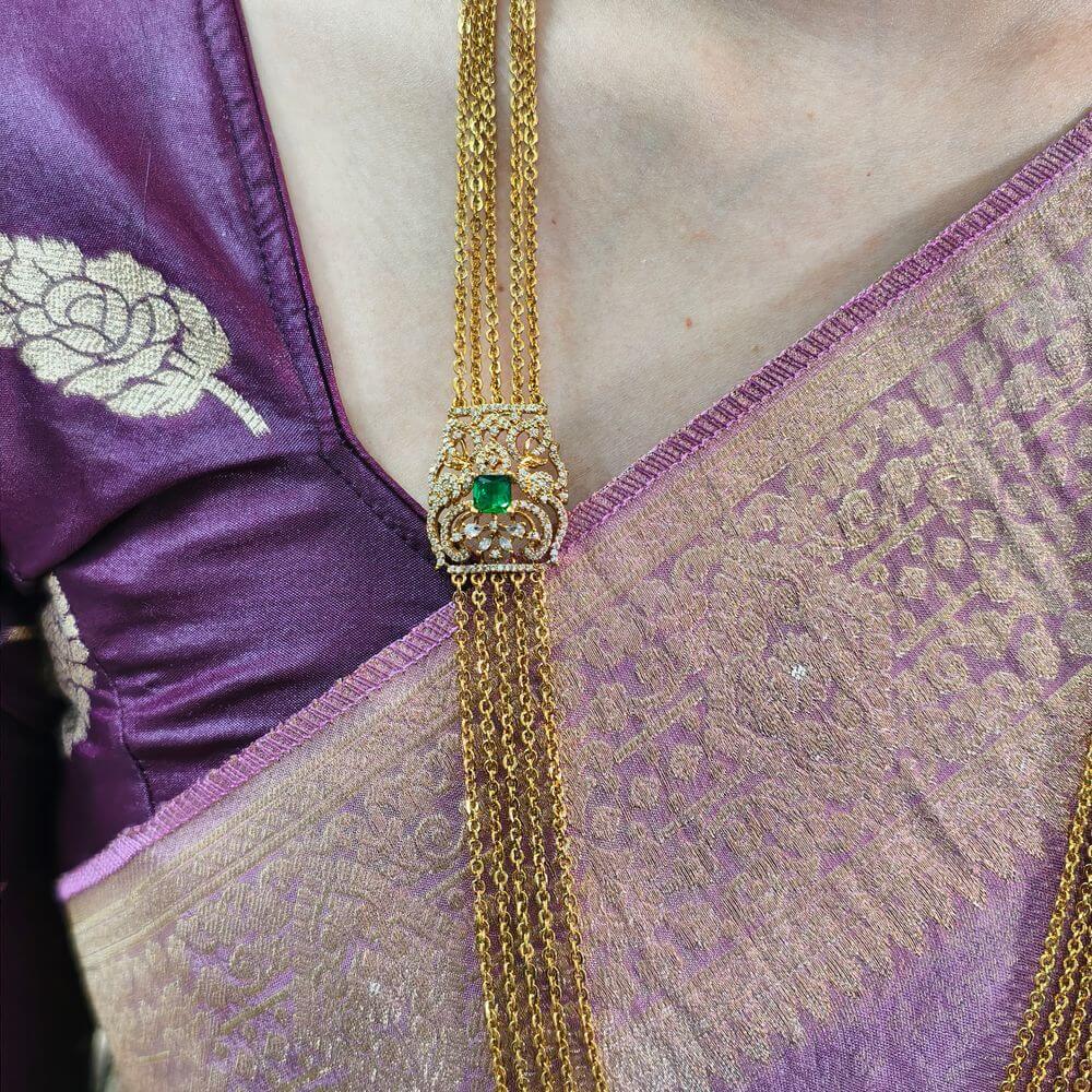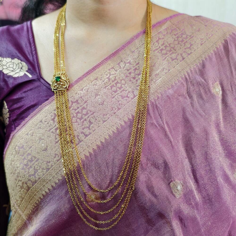 fj2578 Antique finish cz greenstone pendant 5step chandraharam 30inch