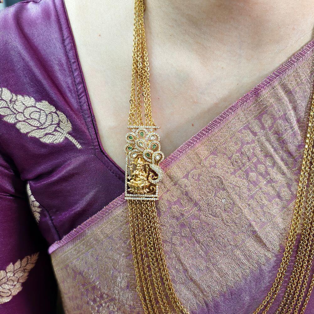 Be the first to review “fj2582 Antique finish lakshmi side pendant greenstone 7step chandrahram”