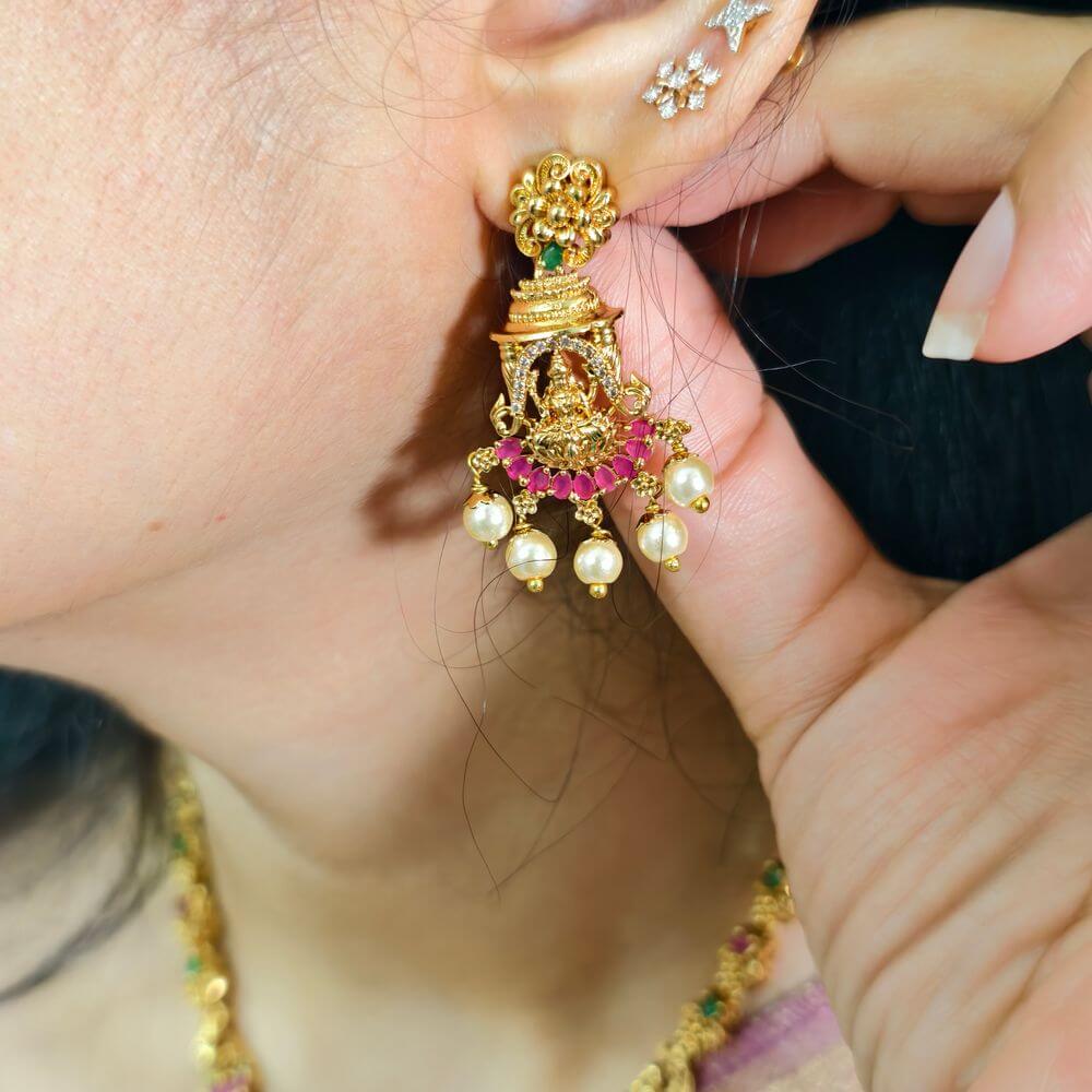 fj2588 real gold look alike lakshmi dollar peacock necksetwith screwback earrings and backchain