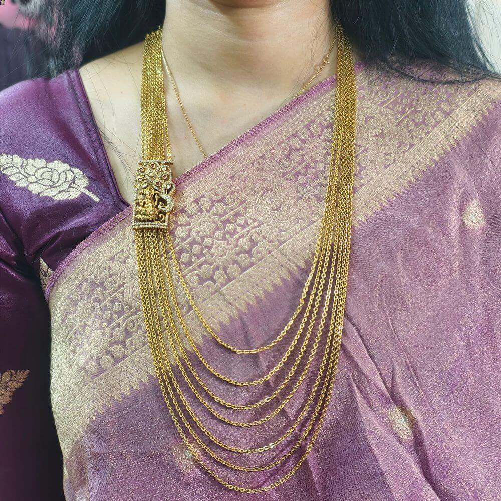 Be the first to review “fj2589 Antique finish lakshmi side pendant rubi stone 7step chandraharam”