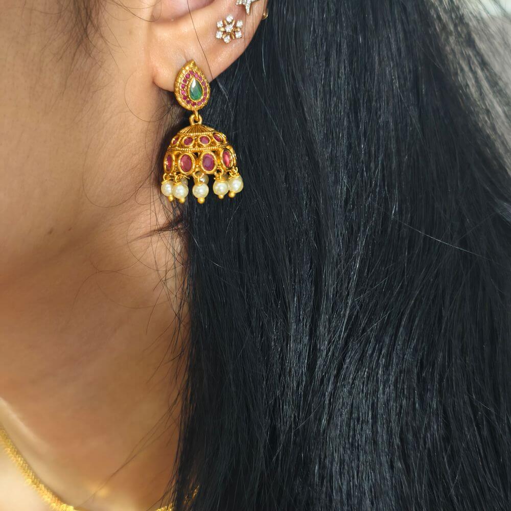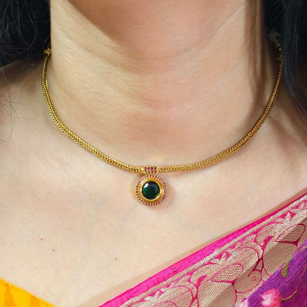 Be the first to review “fj2636 Antique finish Greenstone pendant naanpatti neckset with push back jhumkas”