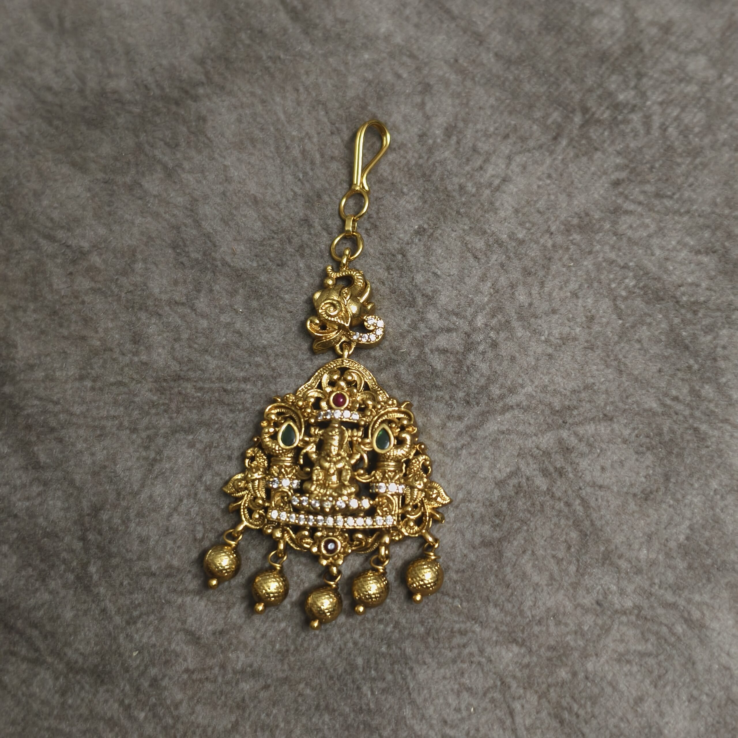 Nakshi polish lakshmi maang teeka with gold balls hangings