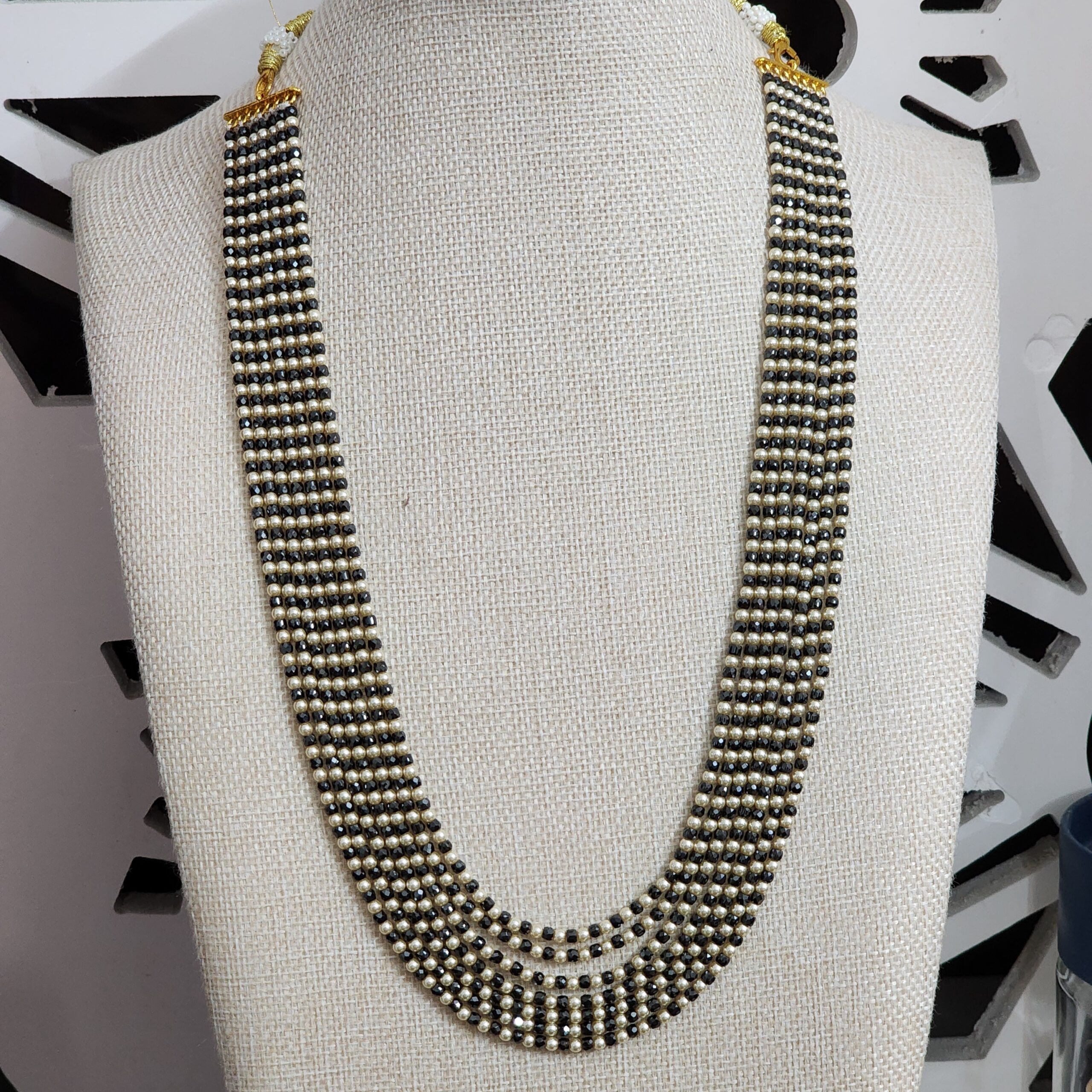 Be the first to review “fj1458 7 line multi string black cz with pearl raani haar”