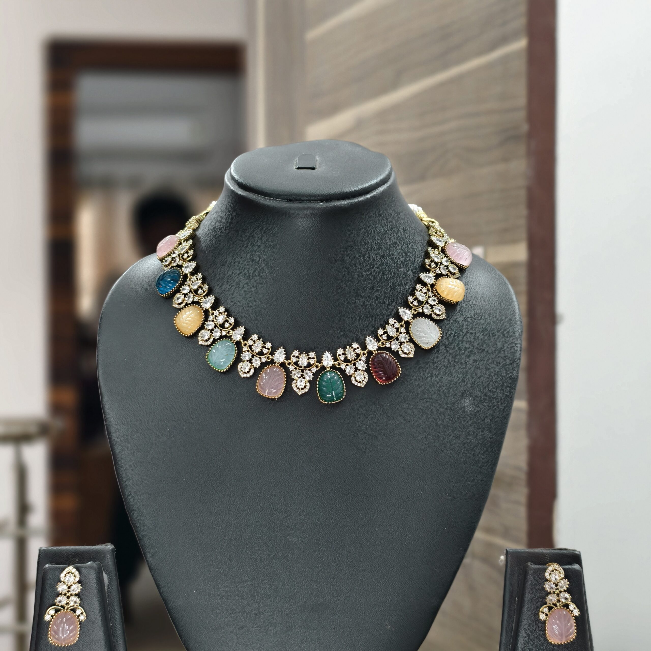 Be the first to review “fj1827 mehandi victorian multi stone colour neckset”