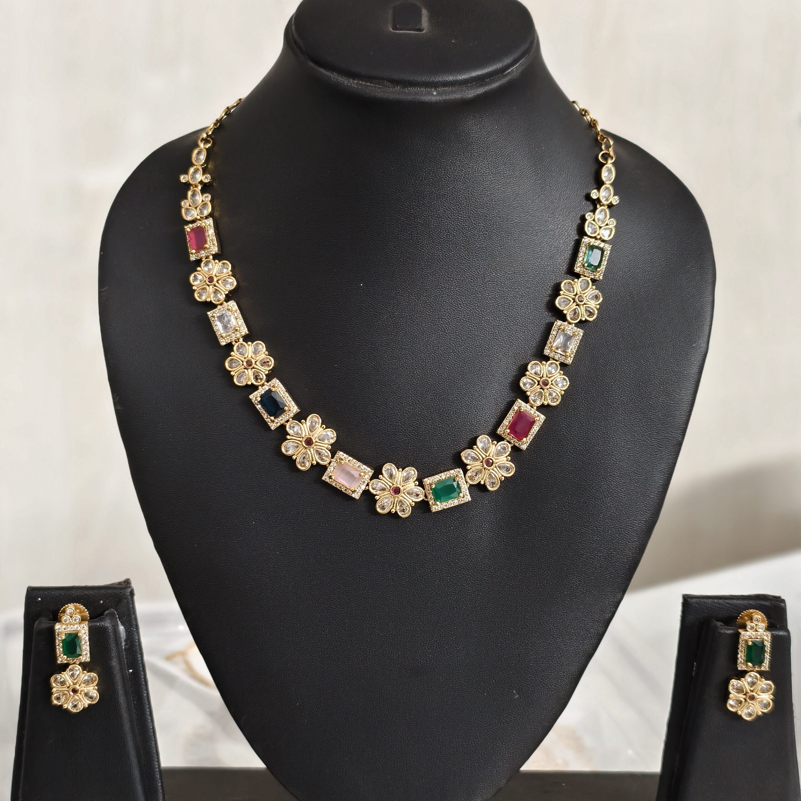 Be the first to review “fj0129 Multi stones uncut flower neckset”