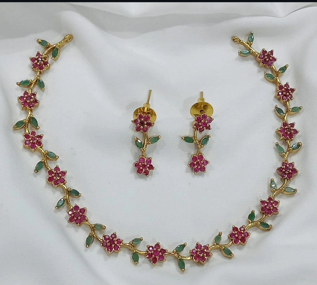 Be the first to review “Ruby and green flower simple neckset with backchain”