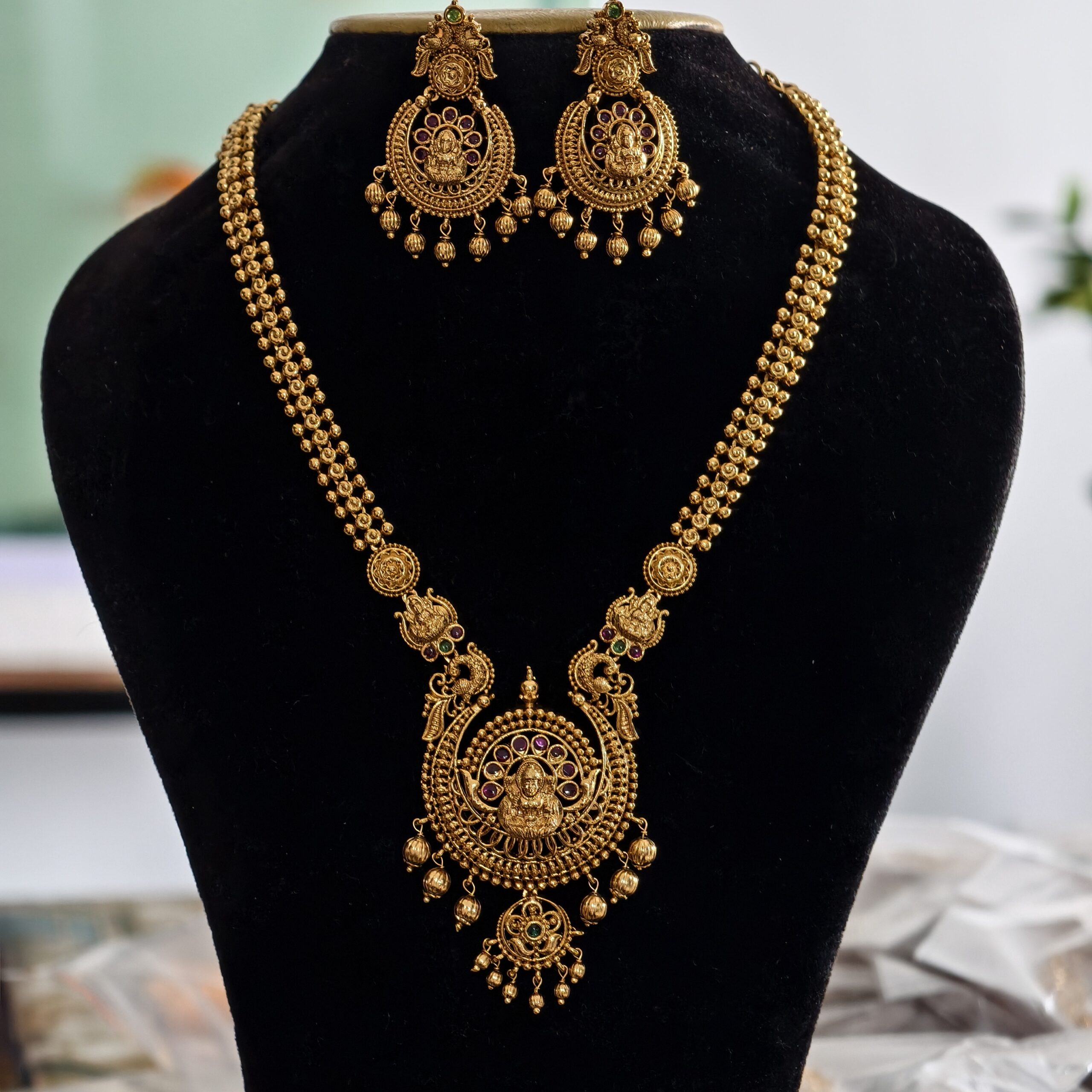 Be the first to review “fj0152 premium quality Nakshi polish lakshmi pendant neckset with back chain”