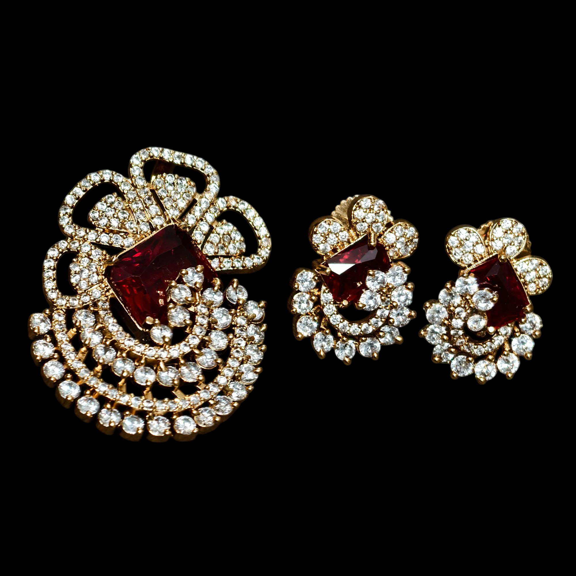 Be the first to review “AD stone pendant middle red stone with eartops”