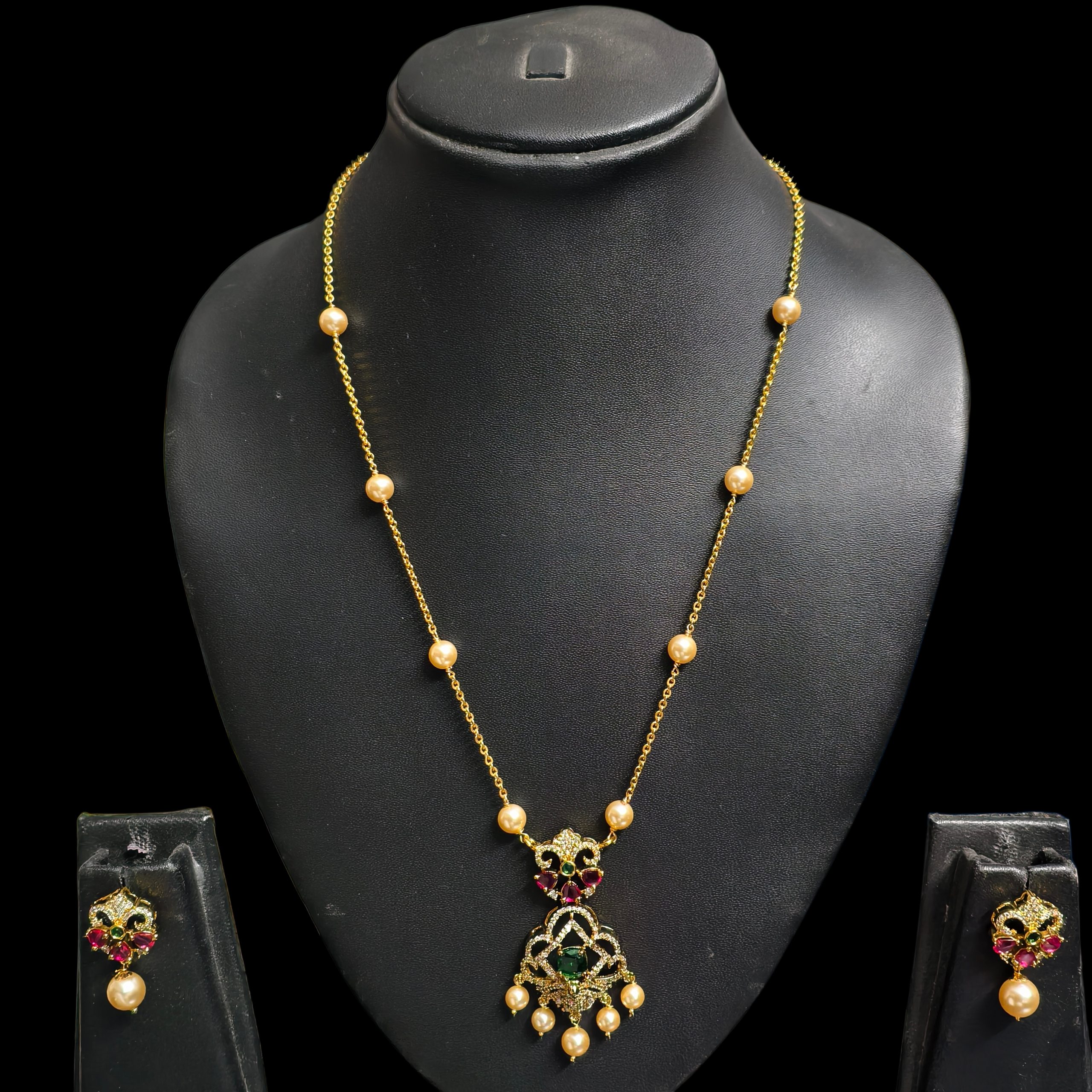 fj2347 pearl chain with pendant and ear rings